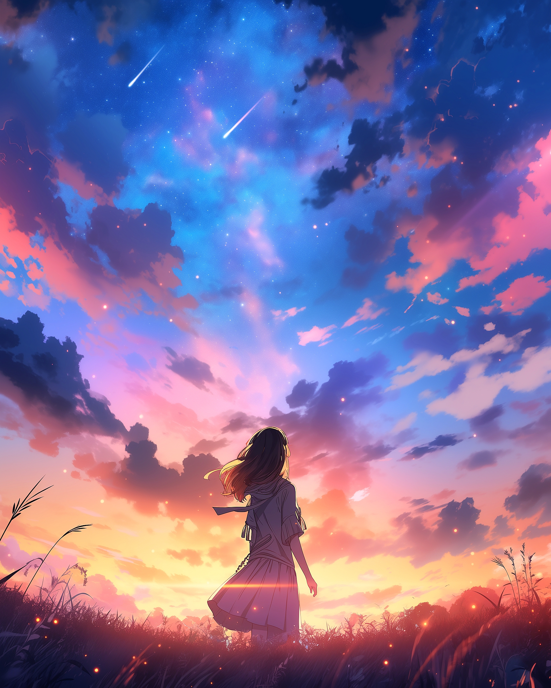 検索タグ:イラスト、キャラクター、女性、女、女の子、女子、女の人、アニメ、漫画、マンガ、若い、人物、美しい、綺麗、きれい、キレイ、芸術、アート、お洒落、おしゃれ、オシャレ、後ろ姿、考え事、考える、悩み、悩みごと、悩む、空、青空、学生、夕空、夕方、コピースペース