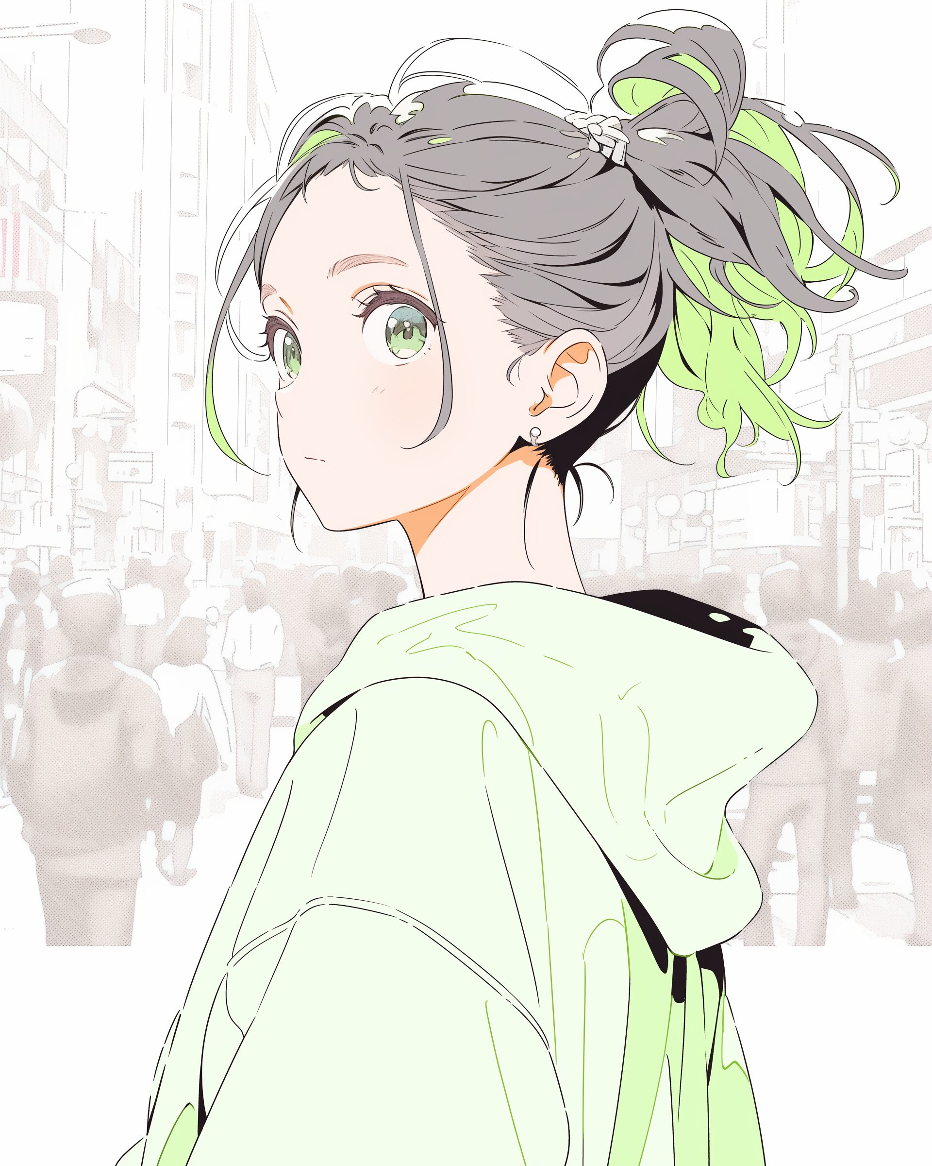 検索タグ:イラスト、ファッション、キャラクター、女性、女、女の子、女子、女の人、アニメ、漫画、マンガ、美人、美女、若い、かわいい、可愛い、カワイイ、人物、顔、美しい、綺麗、きれい、キレイ、アート、お洒落、女子高生、JK、挿絵、夏、春、パステルカラー、春服、インスタ、Instagram、お団子ヘア、緑、グリーン、Green、笑顔