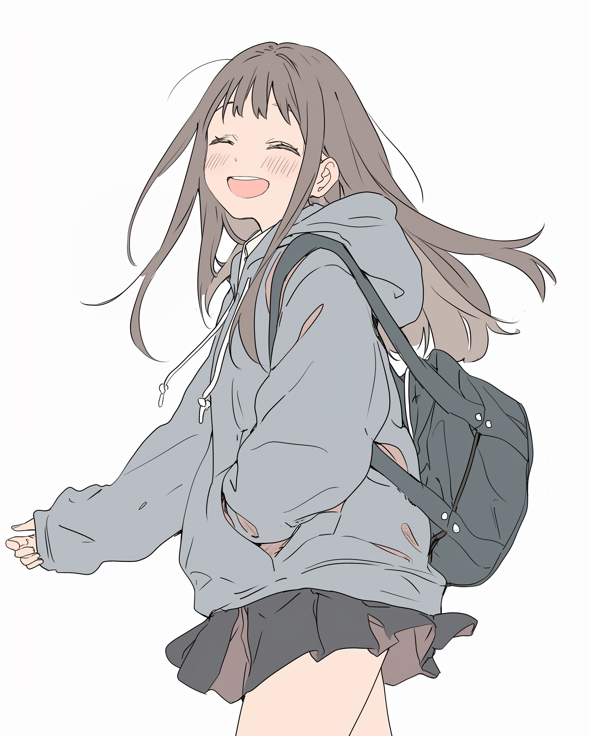 検索タグ:イラスト、ファッション、キャラクター、女性、女、女の子、女子、女の人、アニメ、漫画、マンガ、若い、かわいい、可愛い、カワイイ、人物、顔、美しい、綺麗、きれい、キレイ、アート、お洒落、挿絵、インスタ、Instagram、AI生成画像、コピースペース、パーカー女子、女子高生、JK、笑顔、スマイル、歩く、白背景、横長、微笑み、微笑む