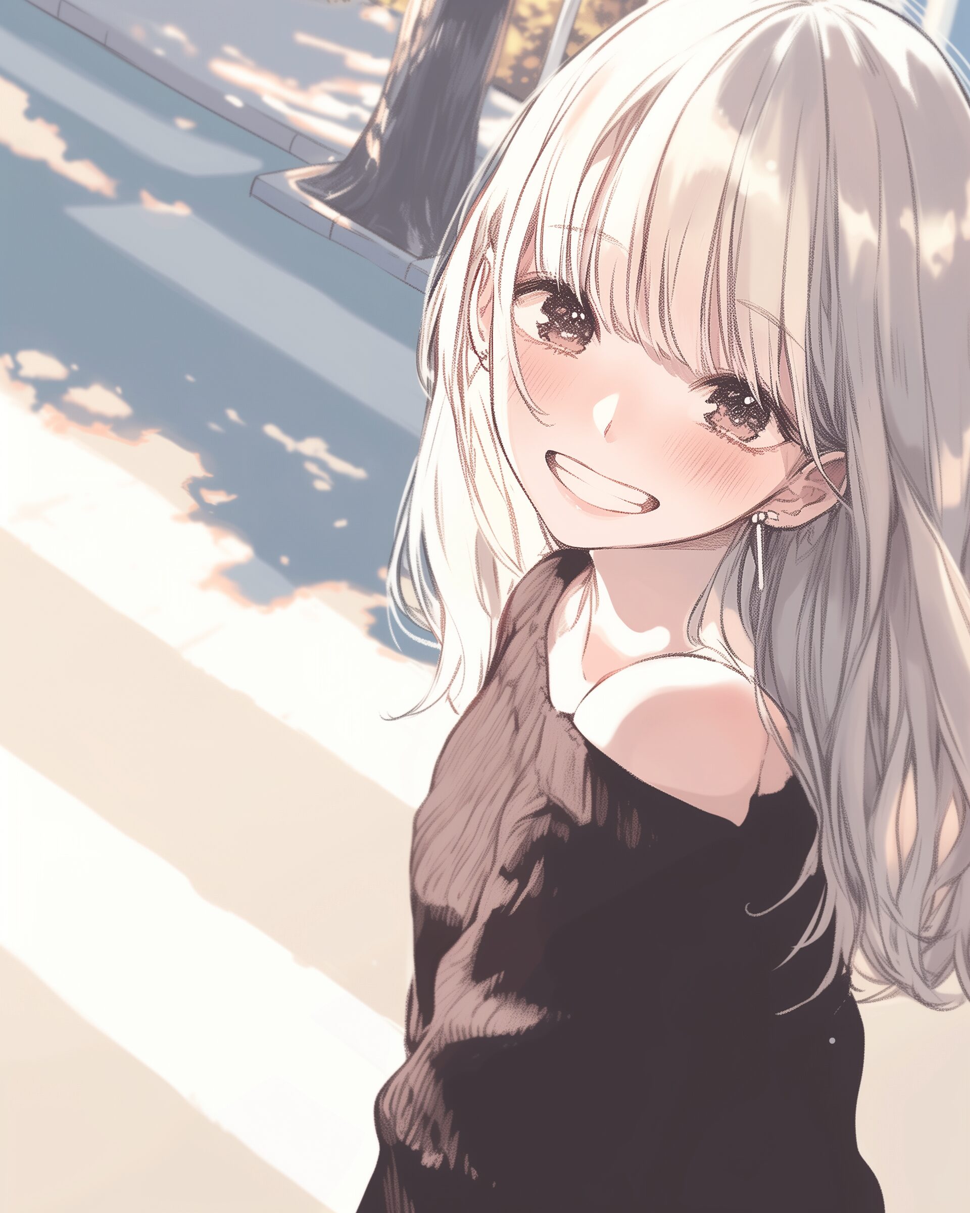 検索タグ:イラスト、ファッション、キャラクター、女性、女、女の子、女子、女の人、アニメ、漫画、マンガ、美人、美女、若い、かわいい、可愛い、カワイイ、人物、顔、美しい、綺麗、きれい、キレイ、アート、お洒落、挿絵、インスタ、Instagram、AI生成画像、fashion、コピースペース、銀髪、お出かけ、街中