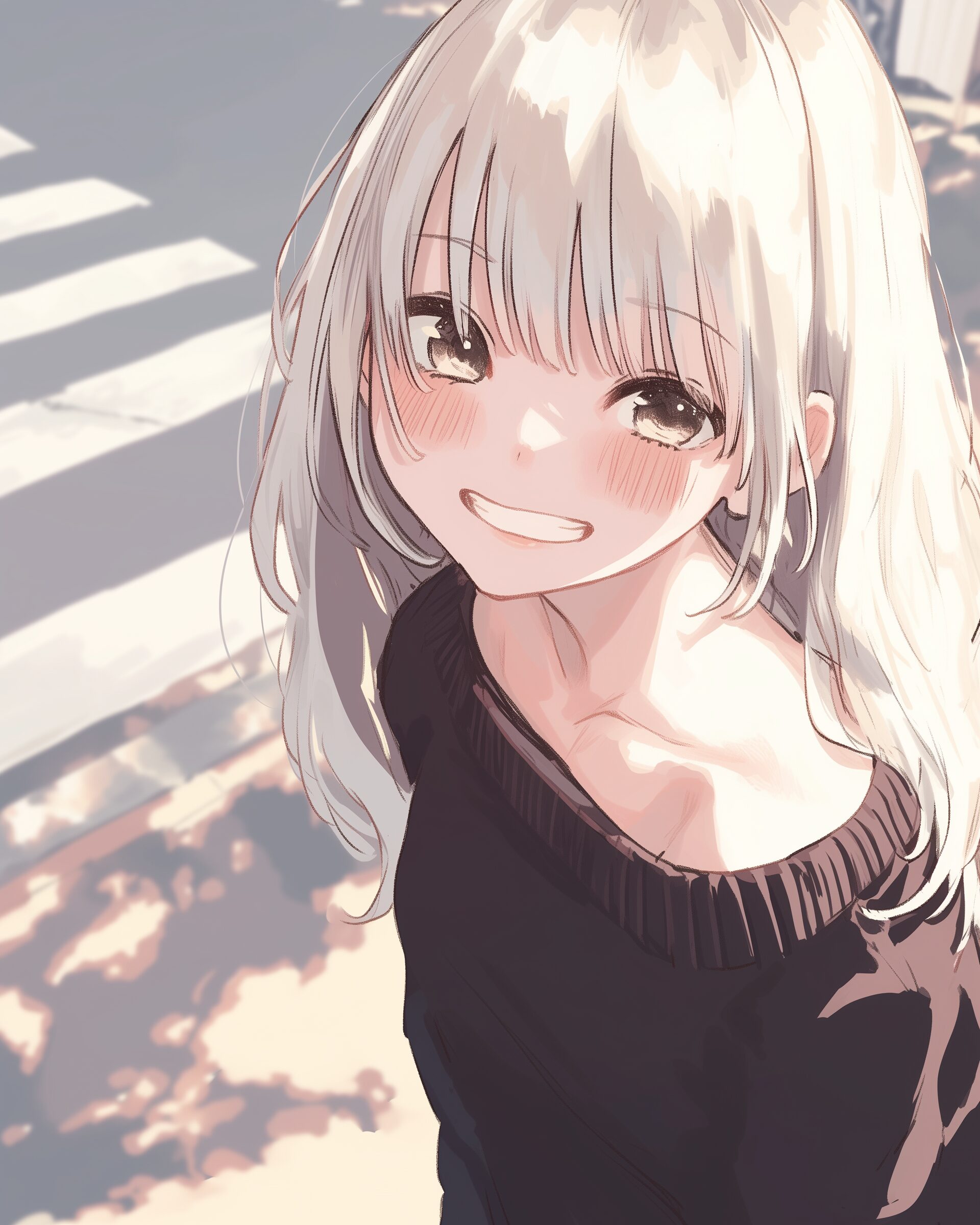 検索タグ:イラスト、ファッション、キャラクター、女性、女、女の子、女子、女の人、アニメ、漫画、マンガ、美人、美女、若い、かわいい、可愛い、カワイイ、人物、顔、美しい、綺麗、きれい、キレイ、アート、お洒落、挿絵、インスタ、Instagram、AI生成画像、fashion、コピースペース、銀髪、お出かけ、街中、笑顔