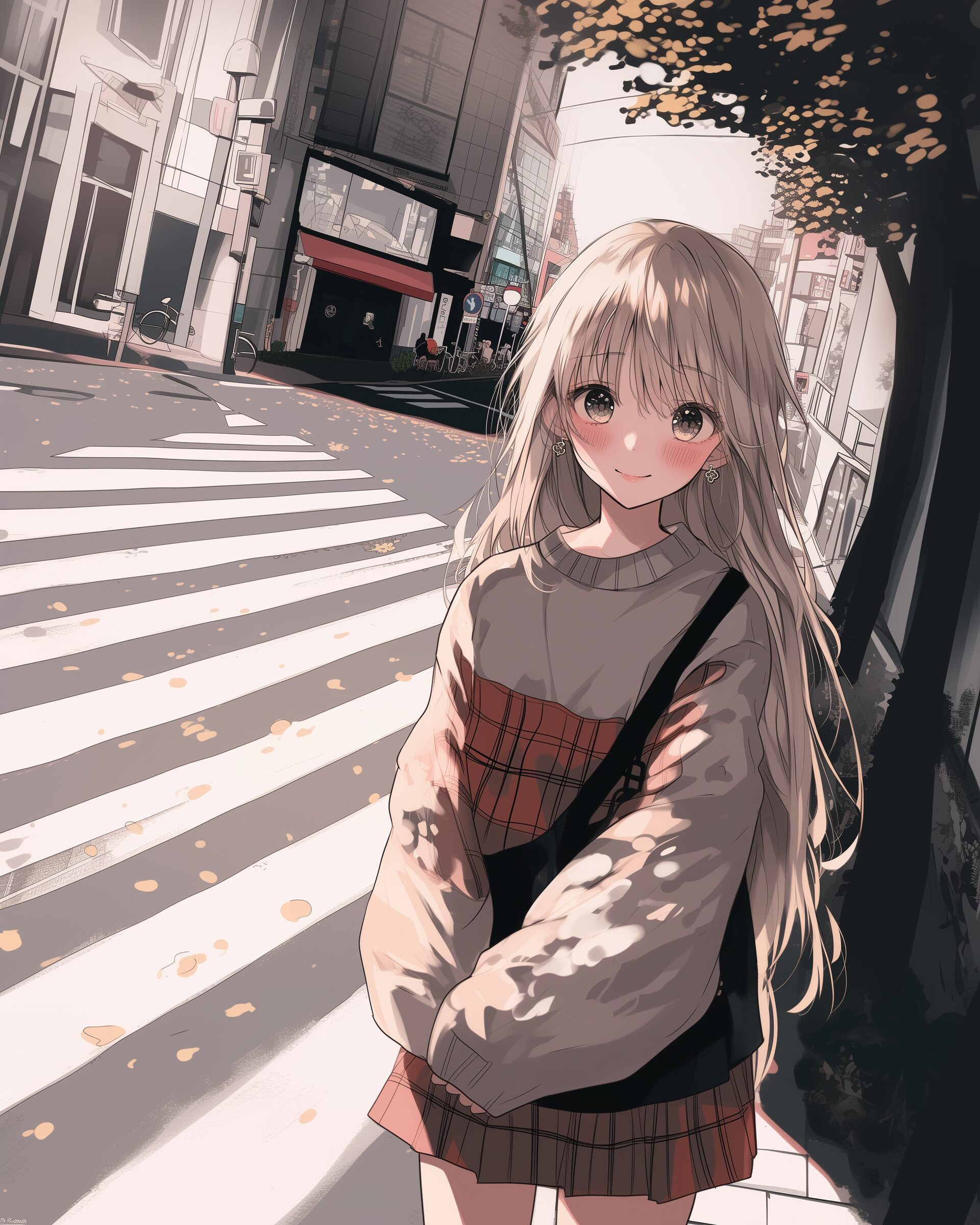 検索タグ:イラスト、ファッション、キャラクター、女性、女、女の子、女子、女の人、アニメ、漫画、マンガ、美人、美女、若い、かわいい、可愛い、カワイイ、人物、顔、美しい、綺麗、きれい、キレイ、アート、お洒落、挿絵、インスタ、Instagram、AI生成画像、fashion、コピースペース、銀髪、お出かけ、街中、笑顔