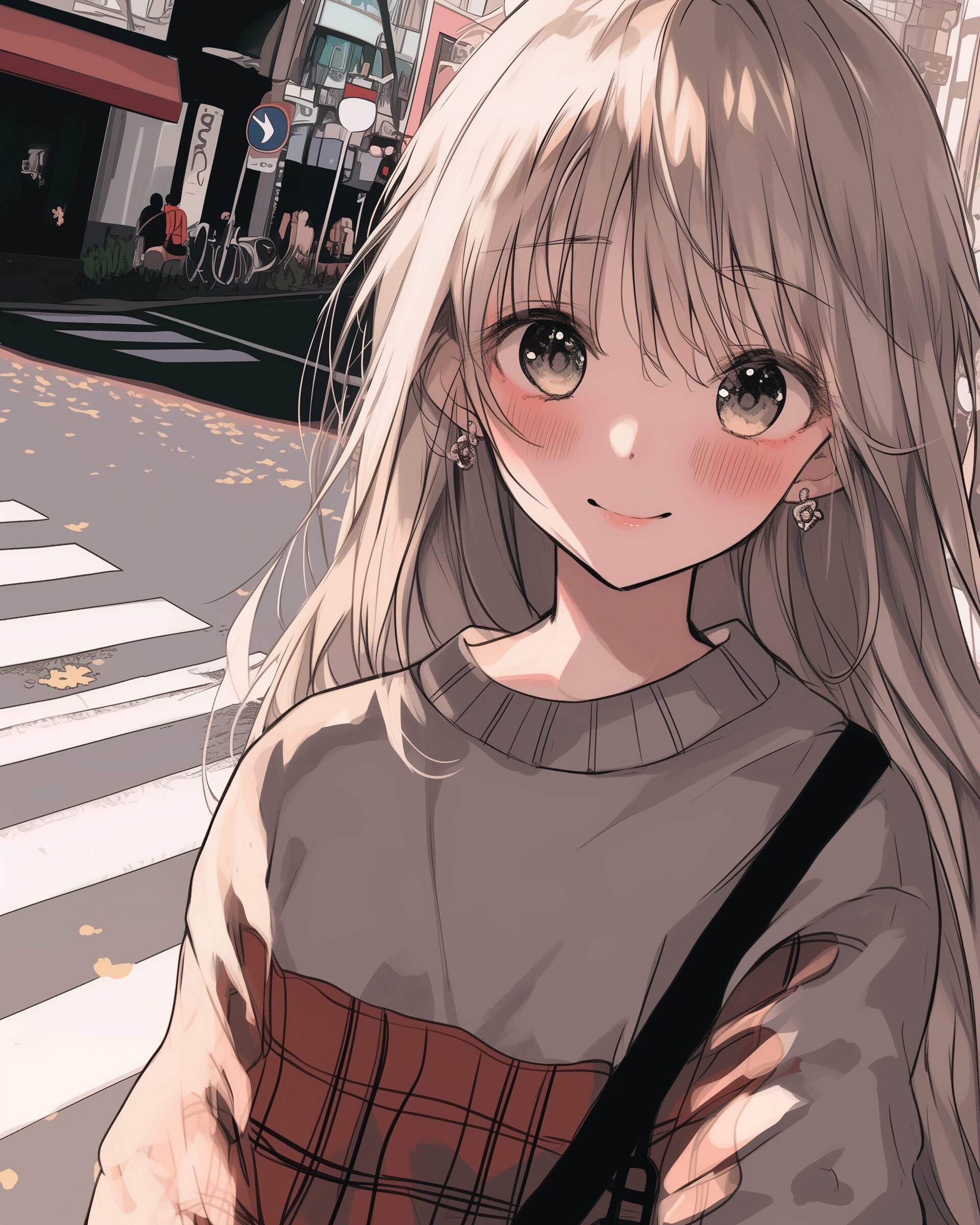 検索タグ:イラスト、ファッション、キャラクター、女性、女、女の子、女子、女の人、アニメ、漫画、マンガ、美人、美女、若い、かわいい、可愛い、カワイイ、人物、顔、美しい、綺麗、きれい、キレイ、アート、お洒落、挿絵、インスタ、Instagram、AI生成画像、fashion、コピースペース、銀髪、お出かけ、街中、笑顔