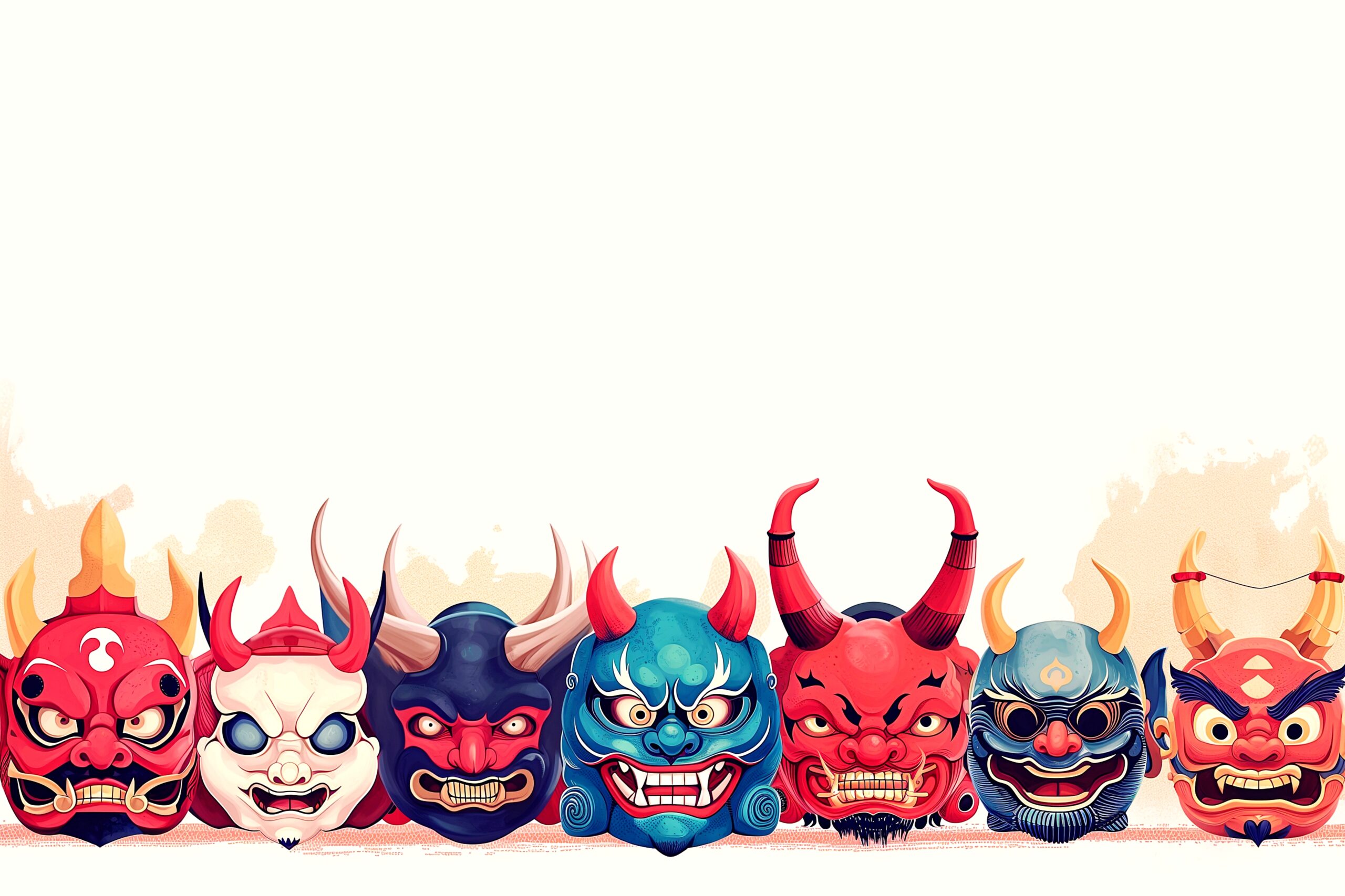 検索タグ:2月、2月3日、節分、豆まき、鬼、鬼のお面、お面、おめん、怖い、こわい、恐い、鬼は外、鬼は外福は内、福は内、イラスト、コピースペース、テキストスペース