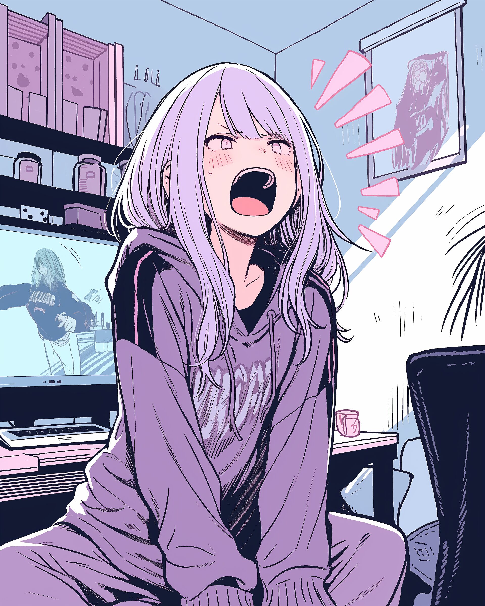 検索タグ:イラスト、ファッション、キャラクター、女性、女、女の子、女子、女の人、アニメ、漫画、マンガ、美人、美女、若い、かわいい、可愛い、カワイイ、人物、顔、美しい、綺麗、きれい、キレイ、アート、お洒落、女子高生、JK、挿絵、夏、春、パステルカラー、春服、インスタ、Instagram、夏、夏服、summer、fashion、サムネイル、アイキャッチ、コピースペース、紫、驚く、驚愕、驚き、衝撃、怒り、怒る、パープル、purple