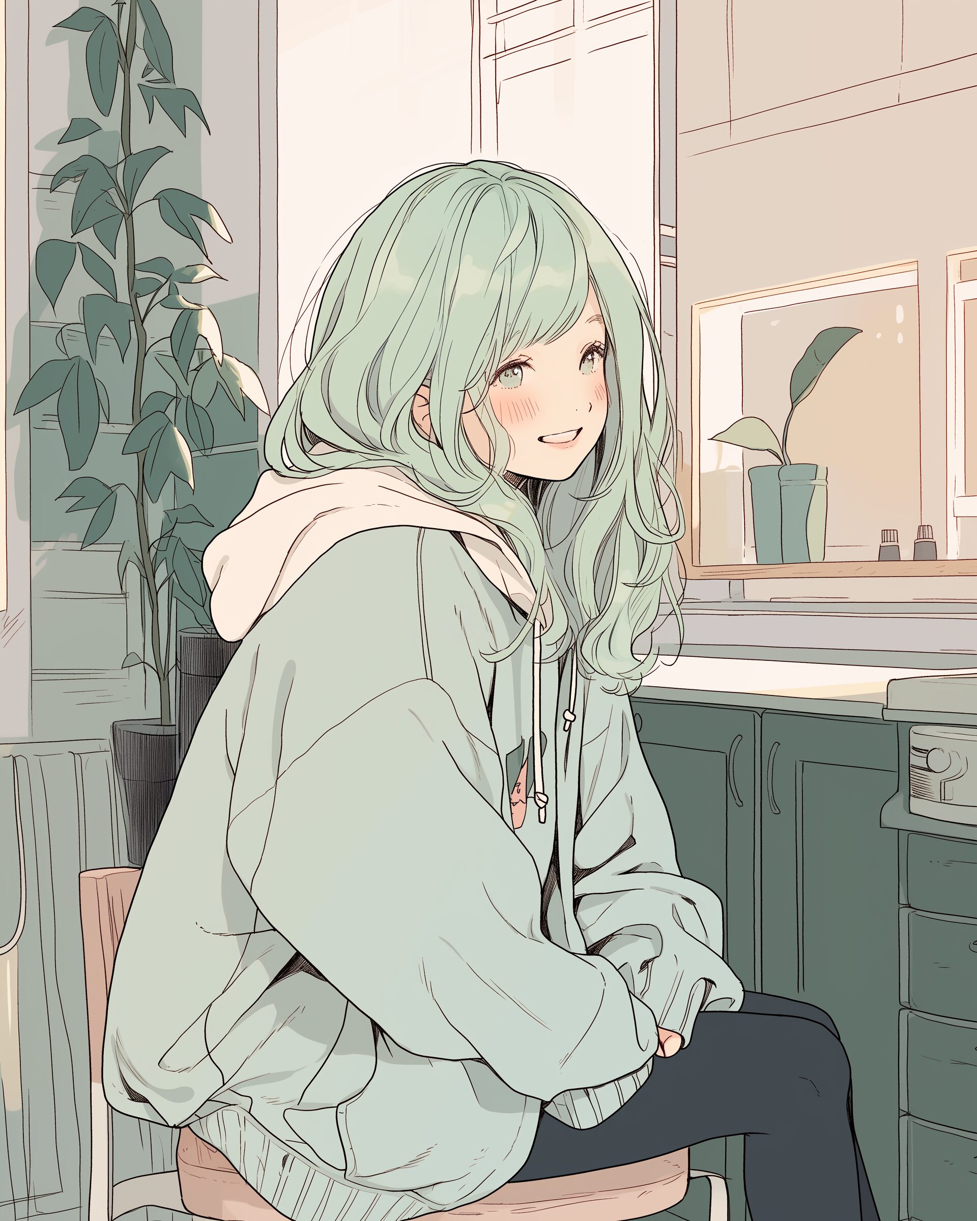 検索タグ:イラスト、ファッション、キャラクター、女性、女、女の子、女子、女の人、アニメ、漫画、マンガ、美人、美女、若い、かわいい、可愛い、カワイイ、人物、顔、美しい、綺麗、きれい、キレイ、アート、お洒落、女子高生、JK、挿絵、夏、春、パステルカラー、パーカー、パーカー女子、hoodie、グリーン、Green、緑