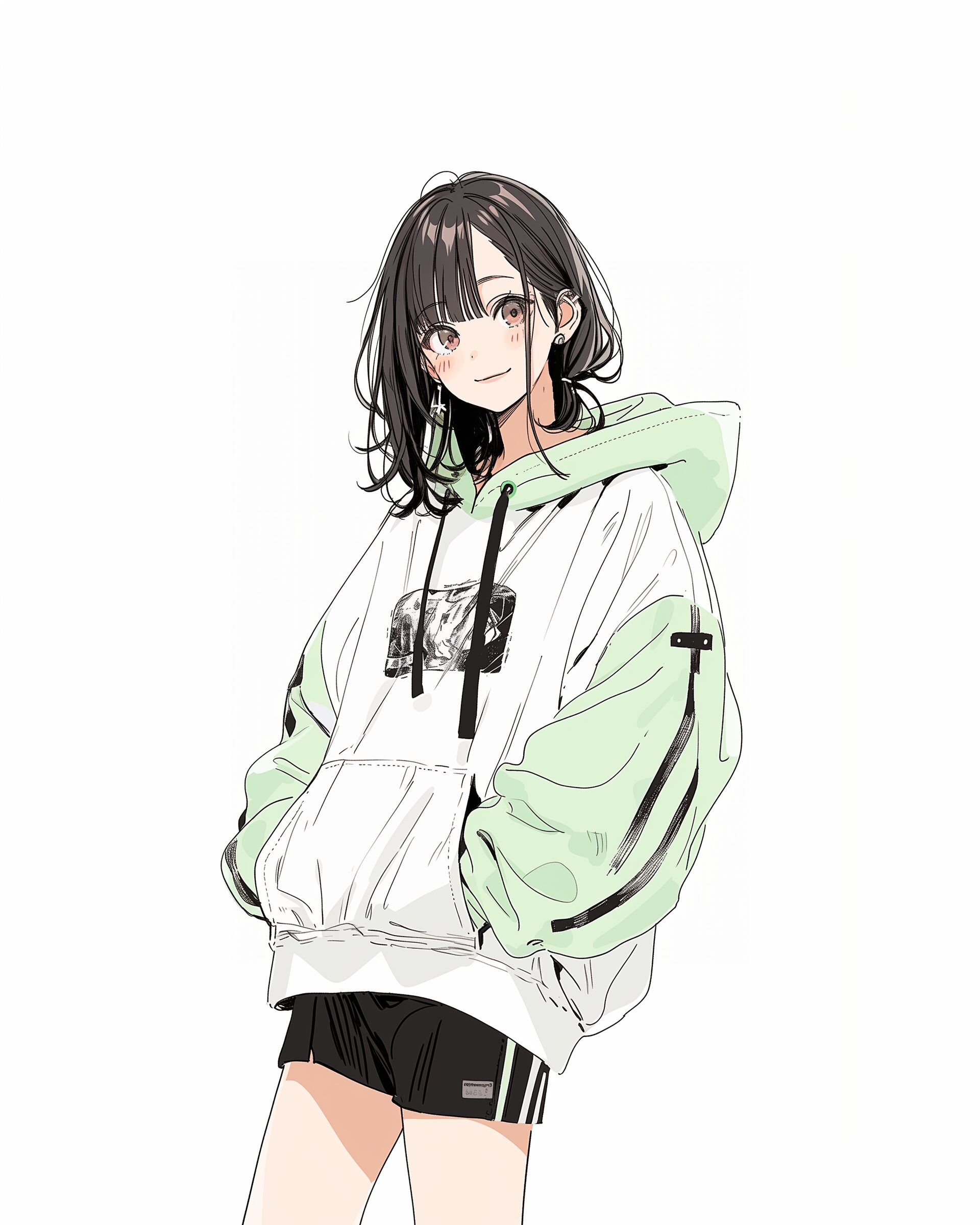 検索タグ:イラスト、ファッション、キャラクター、女性、女、女の子、女子、女の人、アニメ、漫画、マンガ、美人、美女、若い、かわいい、可愛い、カワイイ、人物、顔、美しい、綺麗、きれい、キレイ、アート、お洒落、女子高生、JK、挿絵、夏、春、パステルカラー、パーカー、パーカー女子、hoodie、グリーン、Green、緑