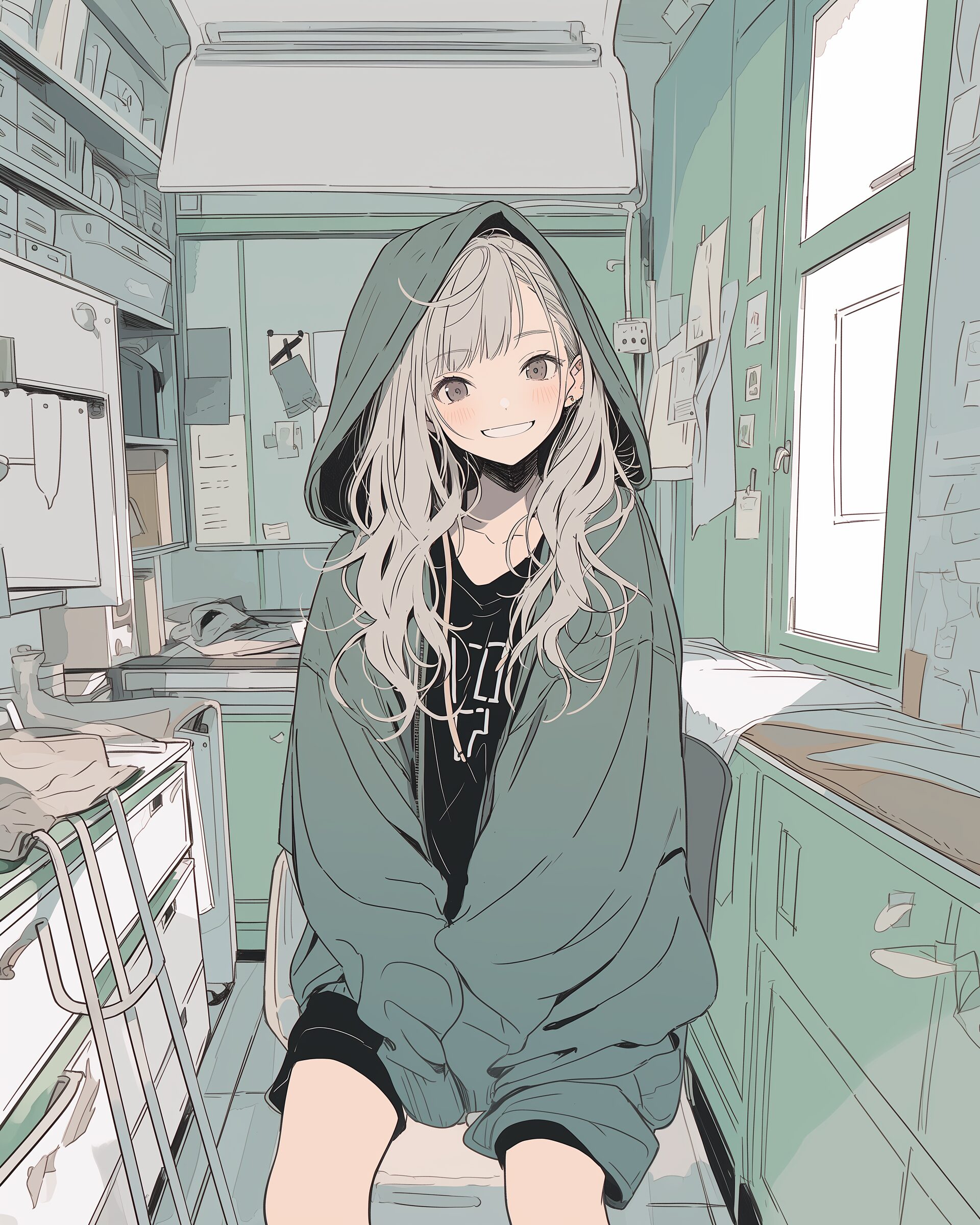検索タグ:イラスト、ファッション、キャラクター、女性、女、女の子、女子、女の人、アニメ、漫画、マンガ、美人、美女、若い、かわいい、可愛い、カワイイ、人物、顔、美しい、綺麗、きれい、キレイ、アート、お洒落、女子高生、JK、挿絵、夏、春、パステルカラー、パーカー、パーカー女子、hoodie、グリーン、Green、緑