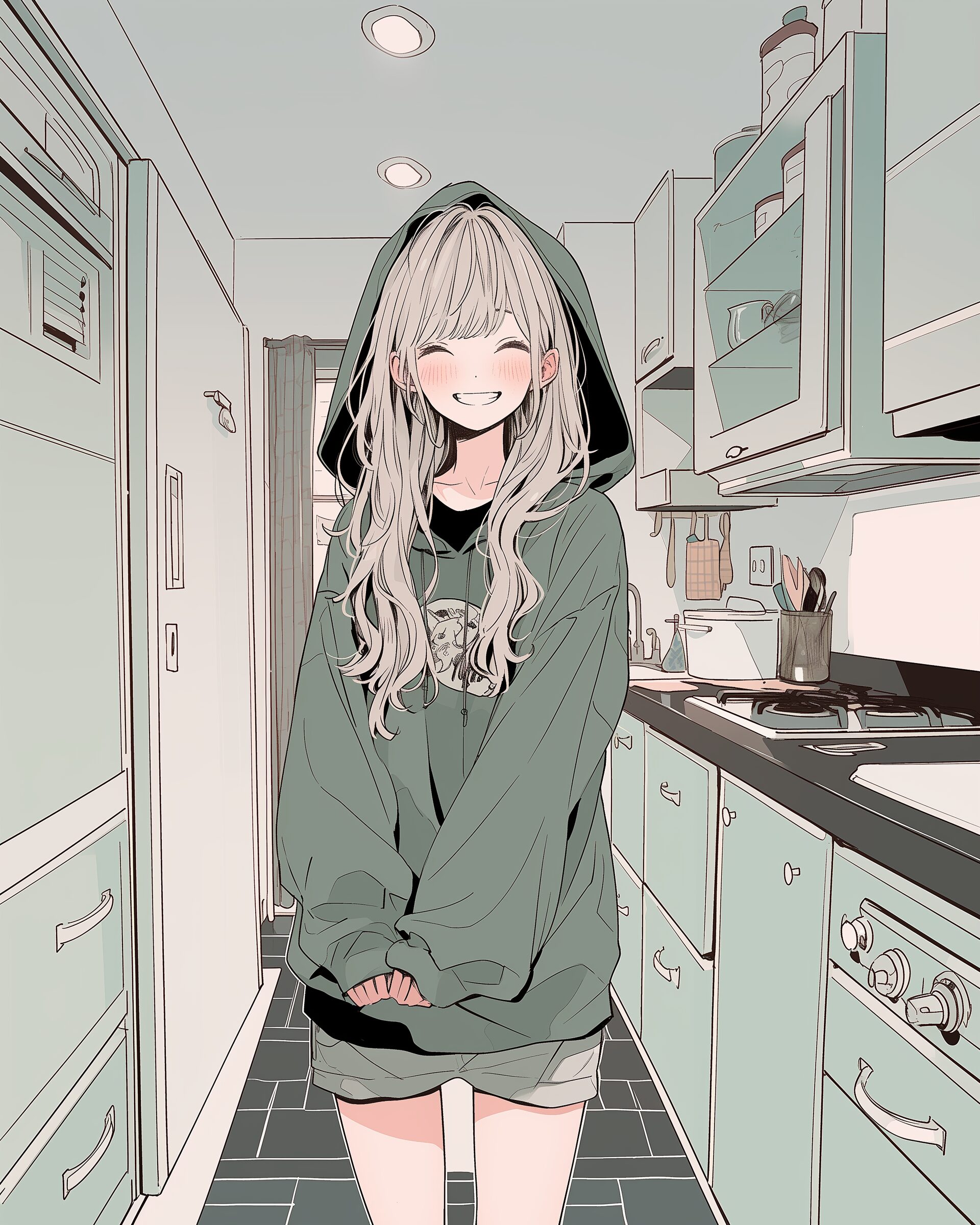 検索タグ:イラスト、ファッション、キャラクター、女性、女、女の子、女子、女の人、アニメ、漫画、マンガ、美人、美女、若い、かわいい、可愛い、カワイイ、人物、顔、美しい、綺麗、きれい、キレイ、アート、お洒落、女子高生、JK、挿絵、夏、春、パステルカラー、パーカー、パーカー女子、hoodie、グリーン、Green、緑