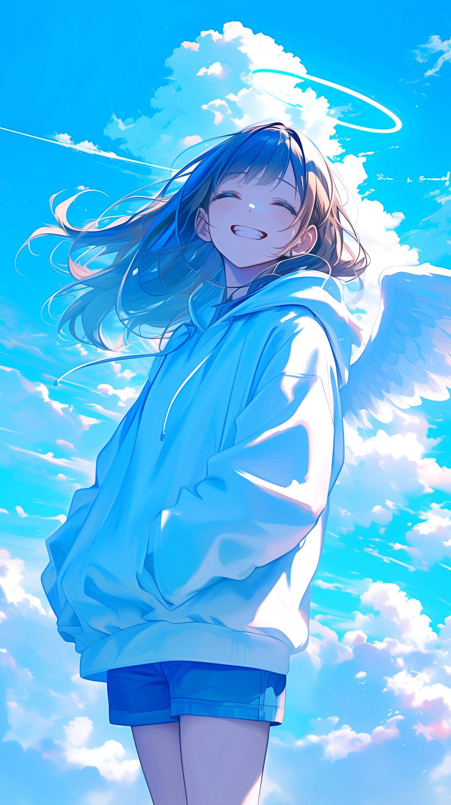 【壁紙】笑顔の天使・女の子イラスト/縦サイズ女子17