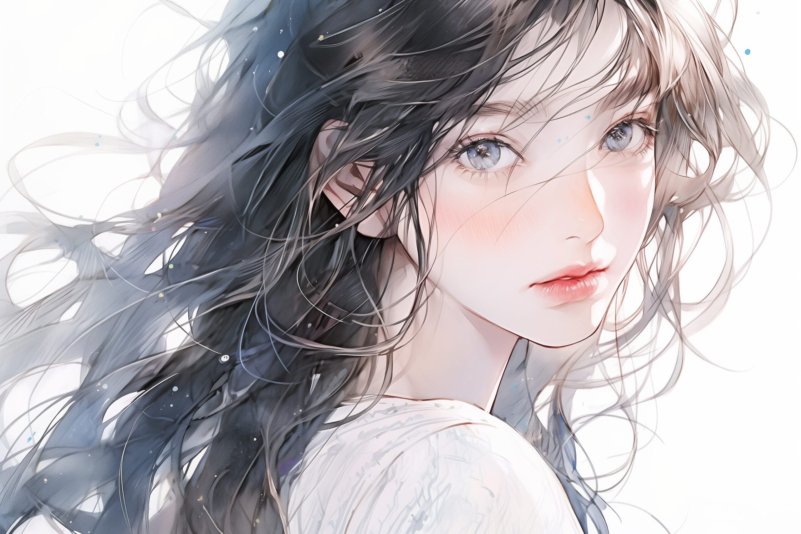検索タグ:イラスト、キャラクター、女性、女、女の子、女子、女の人、アニメ、漫画、マンガ、美人、美女、若い、かわいい、可愛い、カワイイ、白背景、白バック、萌え、萌え系、萌えキャラ、人物、顔、美しい、水彩、綺麗、きれい、キレイ、芸術、水彩画、アート、絵の具