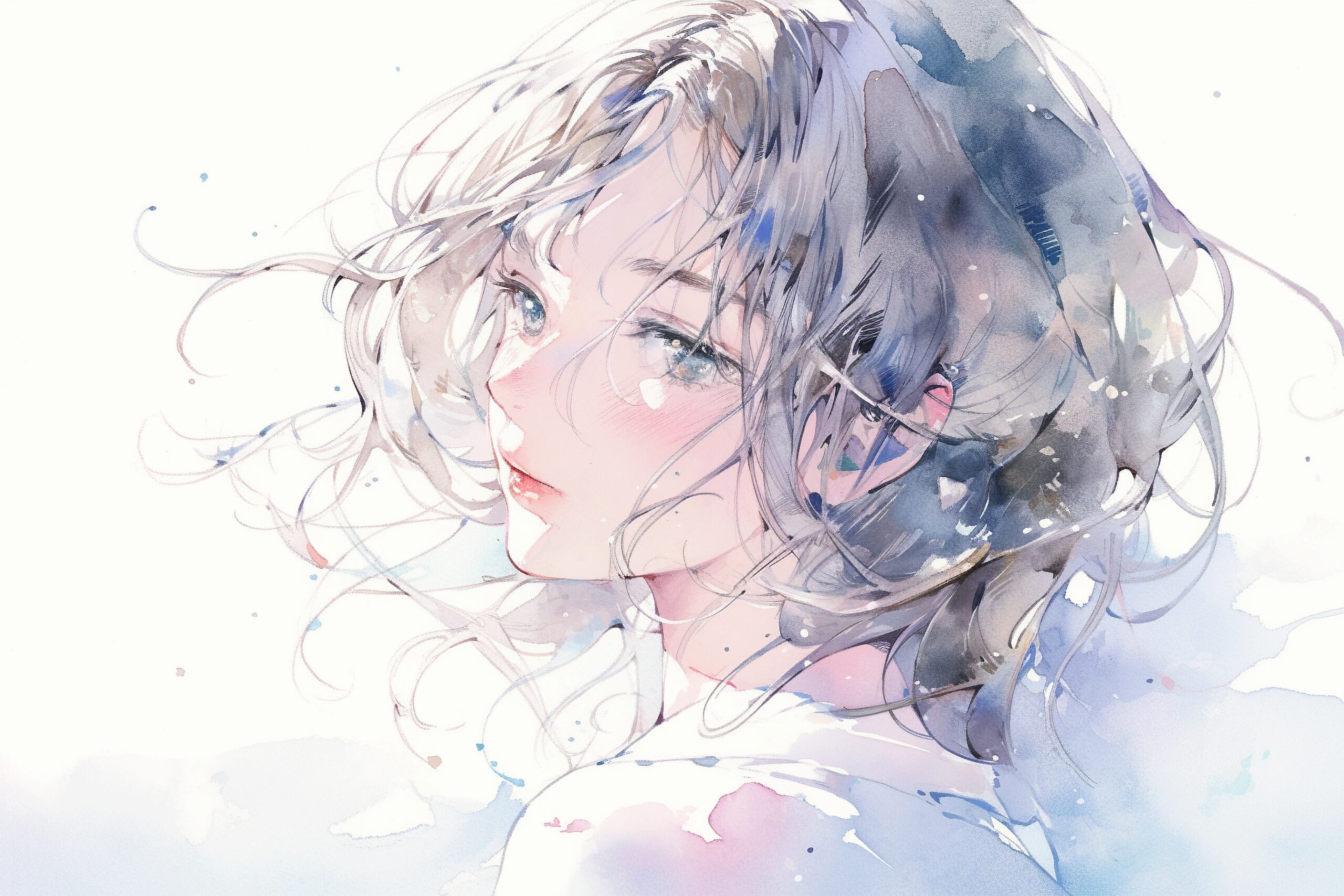 検索タグ:イラスト、キャラクター、女性、女、女の子、女子、女の人、アニメ、漫画、マンガ、美人、美女、若い、かわいい、可愛い、カワイイ、白背景、白バック、萌え、萌え系、萌えキャラ、人物、顔、美しい、水彩、綺麗、きれい、キレイ、芸術、水彩画、アート、絵の具