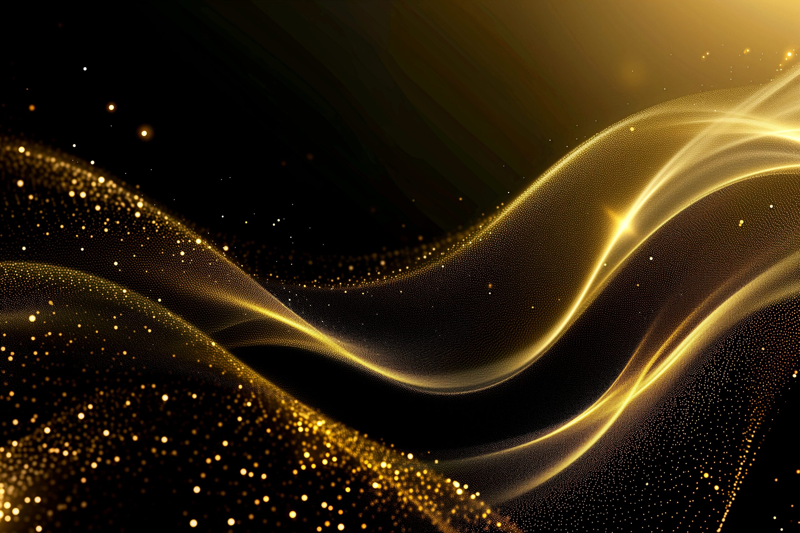 検索タグ:背景・背景素材・フリー素材・キラキラ・画像・模様・煌めき・輝き・フレア・光・シャインニング・ピカピカ・コピースペース・テキストスペース、黒、黒バック、ブラック、金、ゴールド、アブストラクト、ライン、アート、グリッター、曲線、美しい