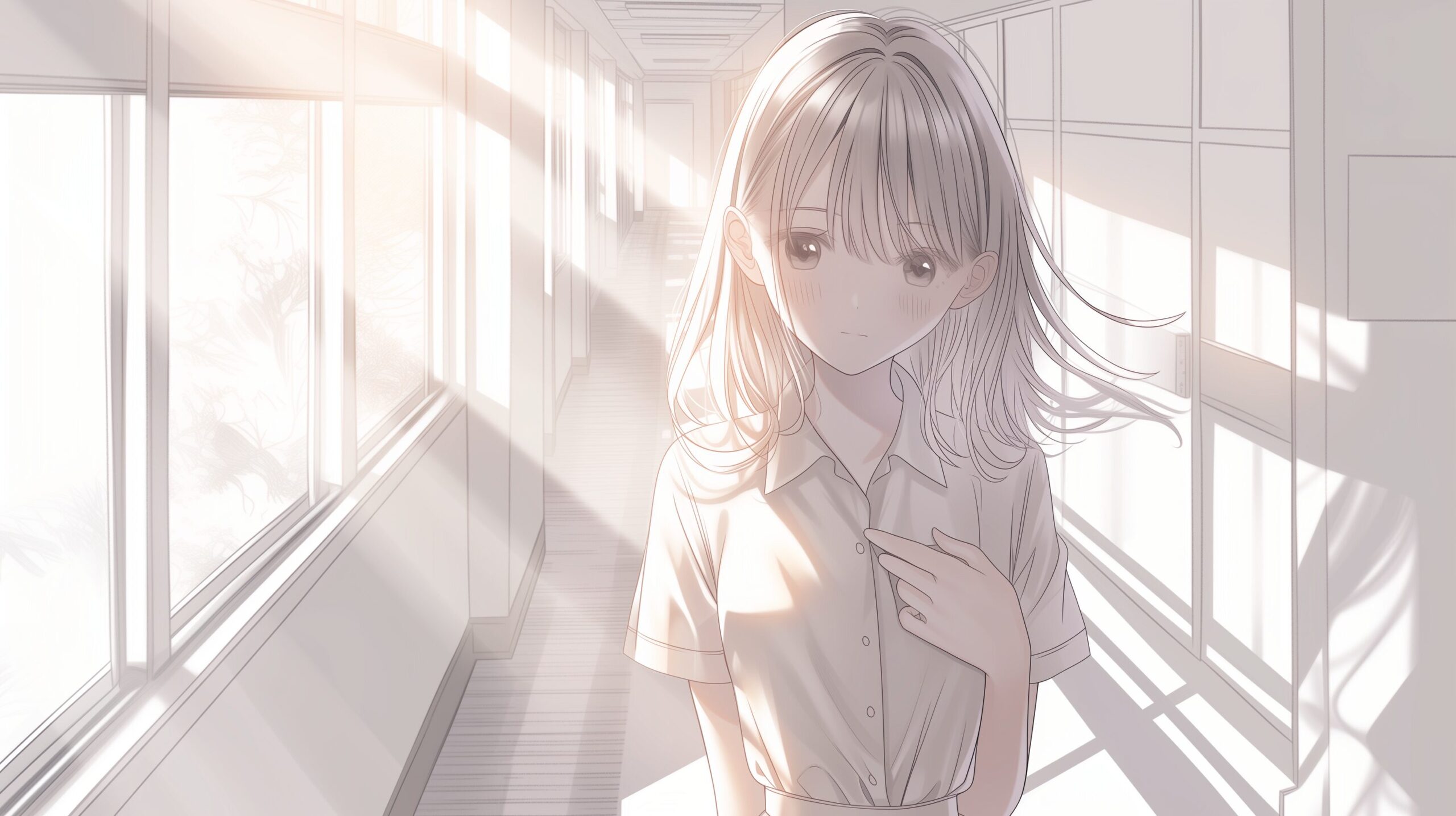 検索タグ:イラスト、ファッション、キャラクター、女性、女、女の子、女子、女の人、アニメ、漫画、マンガ、美人、美女、若い、かわいい、可愛い、カワイイ、人物、顔、美しい、綺麗、きれい、キレイ、アート、お洒落、挿絵、インスタ、Instagram、AI生成画像、fashion、コピースペース、学生、高校生、緊張、照れる、ドキドキ、胸キュン、切ない、笑顔、青春、中学生、制服、悩む、悩み、ワクワク