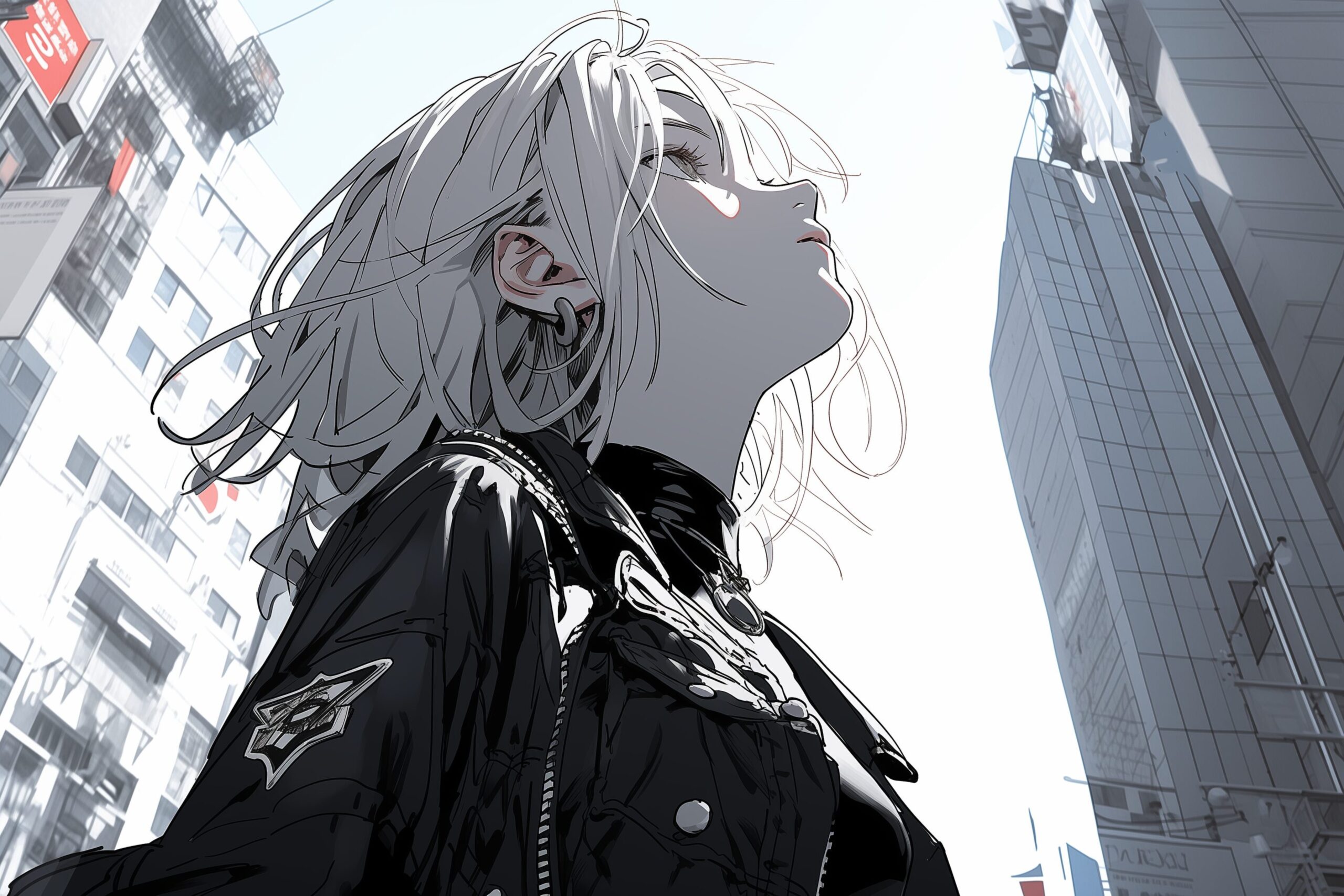 検索タグ:イラスト、ファッション、キャラクター、女性、女、女の子、女子、女の人、アニメ、漫画、マンガ、美人、美女、若い、かわいい、可愛い、カワイイ、人物、顔、美しい、綺麗、きれい、キレイ、アート、お洒落、女子高生、JK、挿絵、夏、春、パステルカラー、トップス、春服、hoodie、パーカー、パーカー女子、待ち受け画像、春服、ブラック、黒、BLACK、ジャケット、見上げる