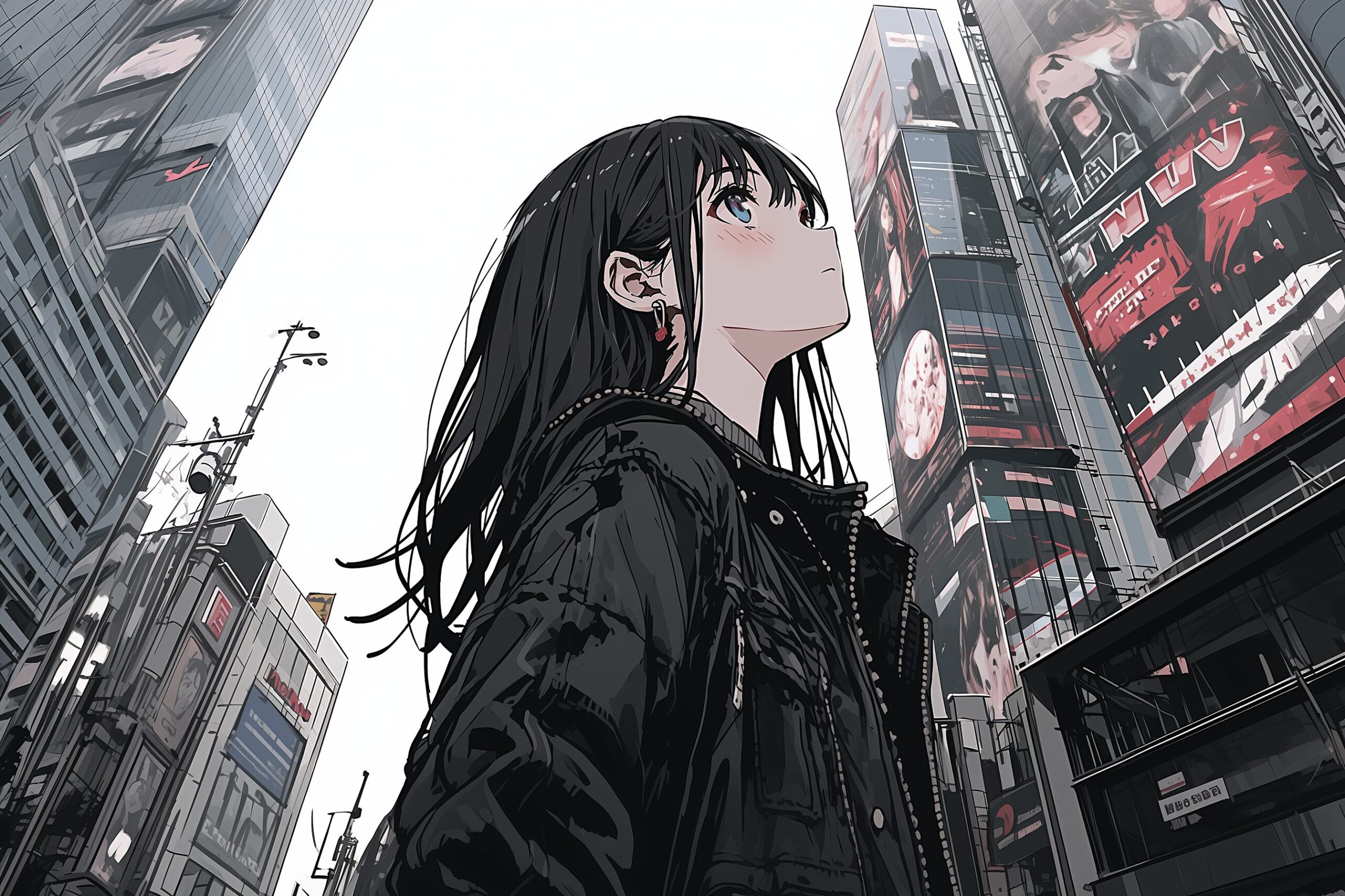 検索タグ:イラスト、ファッション、キャラクター、女性、女、女の子、女子、女の人、アニメ、漫画、マンガ、美人、美女、若い、かわいい、可愛い、カワイイ、人物、顔、美しい、綺麗、きれい、キレイ、アート、お洒落、女子高生、JK、挿絵、夏、春、パステルカラー、トップス、春服、hoodie、パーカー、パーカー女子、待ち受け画像、春服、ブラック、黒、BLACK、ジャケット、見上げる