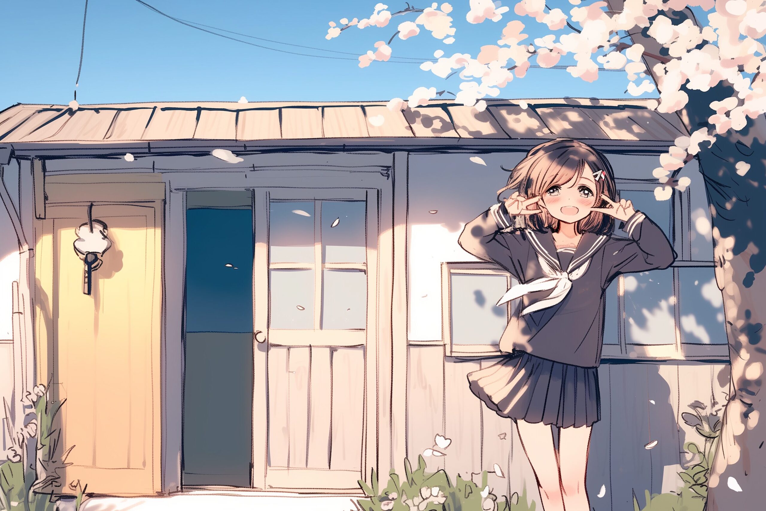 検索タグ:イラスト、キャラクター、女子、女の子、女性、女、女の人、アニメ、漫画、マンガ、若い、人物、顔、美しい、綺麗、きれい、キレイ、アート、お洒落、挿絵、インスタ、Instagram、AI生成画像、コピースペース、かわいい、可愛い、カワイイ、制服、ロングヘア、高校生、学生、セーラー服、笑顔、微笑み、微笑む、黒髪、キャラクター、桜、春、さくら、サクラ、入学、