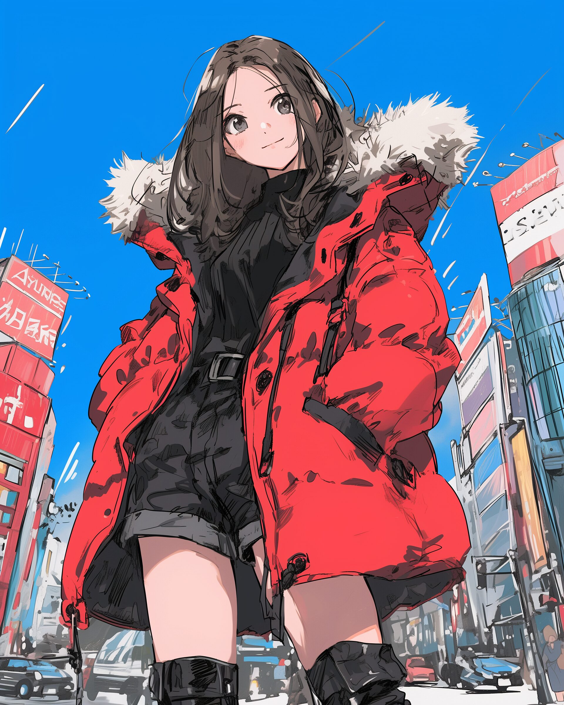 検索タグ:イラスト、ファッション、キャラクター、女性、女、女の子、女子、女の人、アニメ、漫画、マンガ、美人、美女、若い、かわいい、可愛い、カワイイ、AI生成画像、萌え、萌え系、萌えキャラ、人物、顔、美しい、綺麗、きれい、キレイ、芸術、アート、顔、冬服、冬、洋服、お洒落、おしゃれ、オシャレ、コーデ、コーディネート、パーカー、パーカー女子、キュート、コート、赤、レッド、待ち合わせ、女子高生、JK