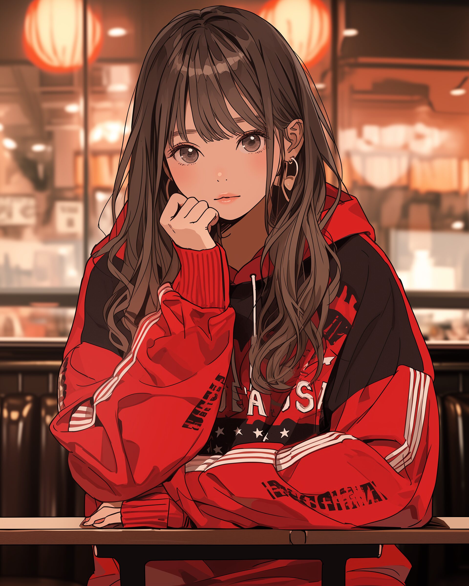 検索タグ:イラスト、ファッション、キャラクター、女性、女、女の子、女子、女の人、アニメ、漫画、マンガ、美人、美女、若い、かわいい、可愛い、カワイイ、萌え、萌え系、萌えキャラ、人物、顔、美しい、綺麗、きれい、キレイ、芸術、アート、顔、冬服、冬、洋服、お洒落、おしゃれ、オシャレ、コーデ、コーディネート、キュート、女子高生、JK、ジャケット、レッド、赤、スウェット