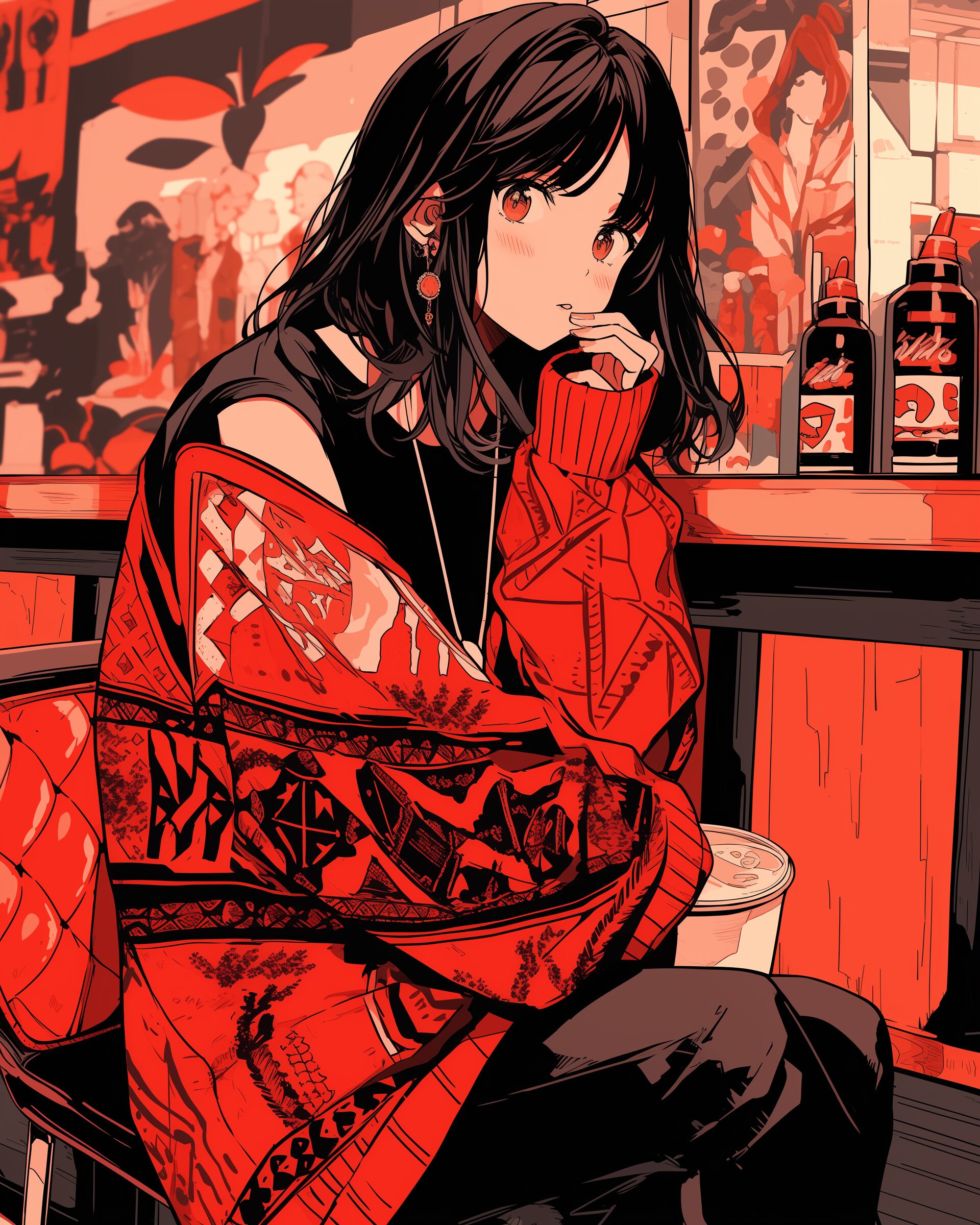 検索タグ:イラスト、ファッション、キャラクター、女性、女、女の子、女子、女の人、アニメ、漫画、マンガ、美人、美女、若い、かわいい、可愛い、カワイイ、萌え、萌え系、萌えキャラ、人物、顔、美しい、綺麗、きれい、キレイ、芸術、アート、顔、冬服、冬、洋服、お洒落、おしゃれ、オシャレ、コーデ、コーディネート、キュート、女子高生、JK、ジャケット、レッド、赤、スウェット