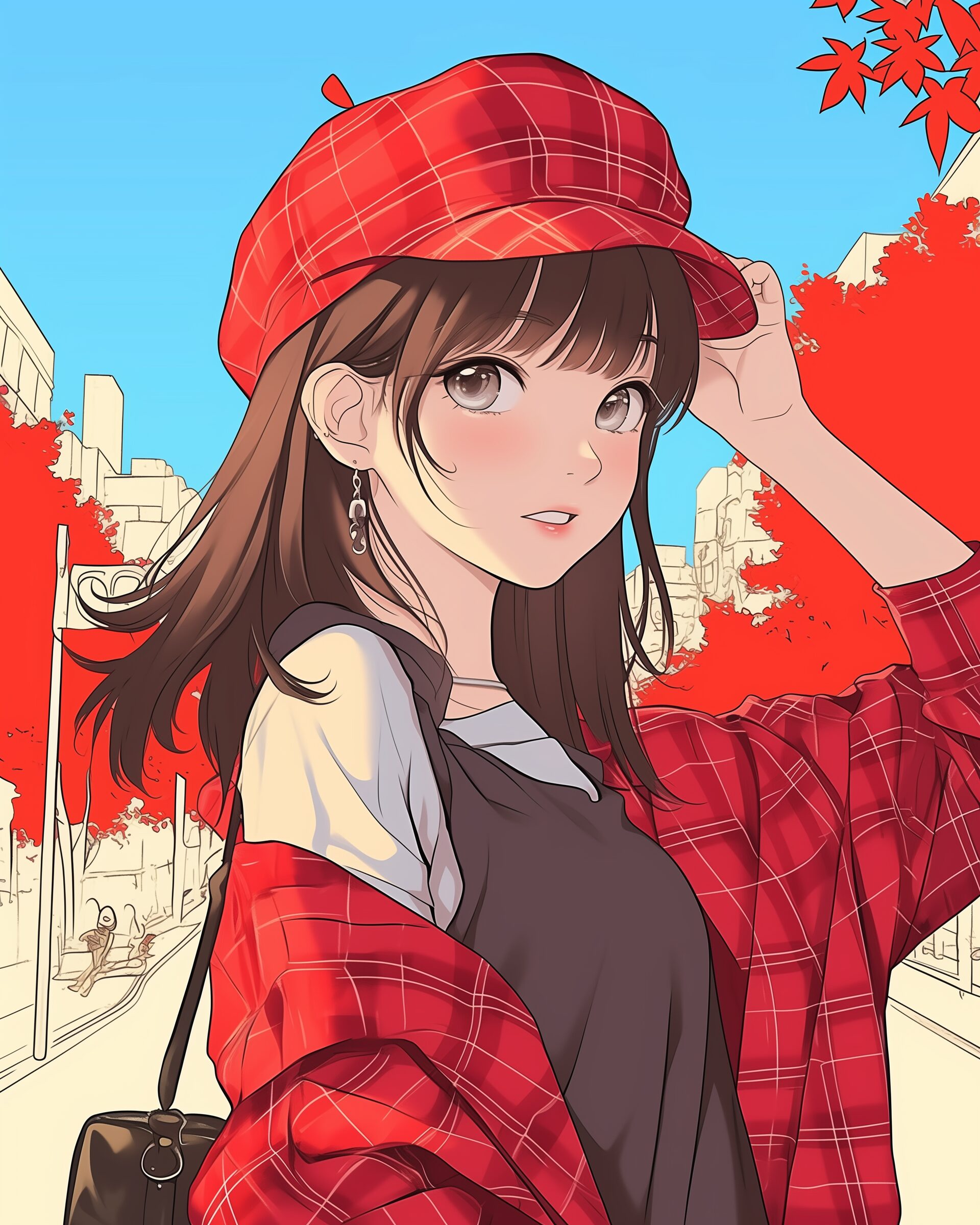 検索タグ:イラスト、ファッション、キャラクター、女性、女、女の子、女子、女の人、アニメ、漫画、マンガ、美人、美女、若い、かわいい、可愛い、カワイイ、人物、顔、美しい、綺麗、きれい、キレイ、アート、お洒落、女子高生、JK、挿絵、春、パステルカラー、インスタ、Instagram、fashion、サムネイル、アイキャッチ、コピースペース、秋冬ファッション、赤、レッド、チェック柄、秋、秋服、紅葉