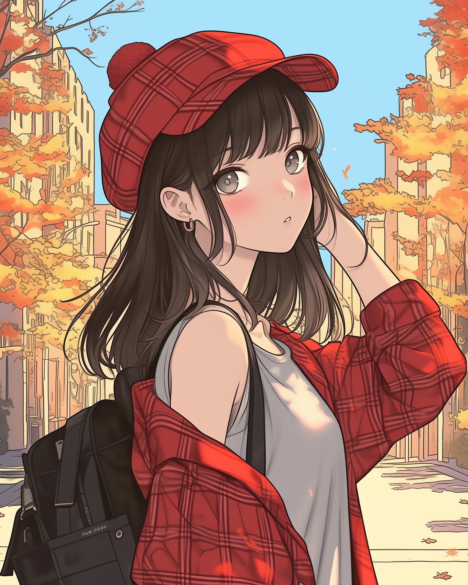 検索タグ:イラスト、ファッション、キャラクター、女性、女、女の子、女子、女の人、アニメ、漫画、マンガ、美人、美女、若い、かわいい、可愛い、カワイイ、人物、顔、美しい、綺麗、きれい、キレイ、アート、お洒落、女子高生、JK、挿絵、春、パステルカラー、インスタ、Instagram、fashion、サムネイル、アイキャッチ、コピースペース、秋冬ファッション、赤、レッド、チェック柄、秋、秋服、紅葉
