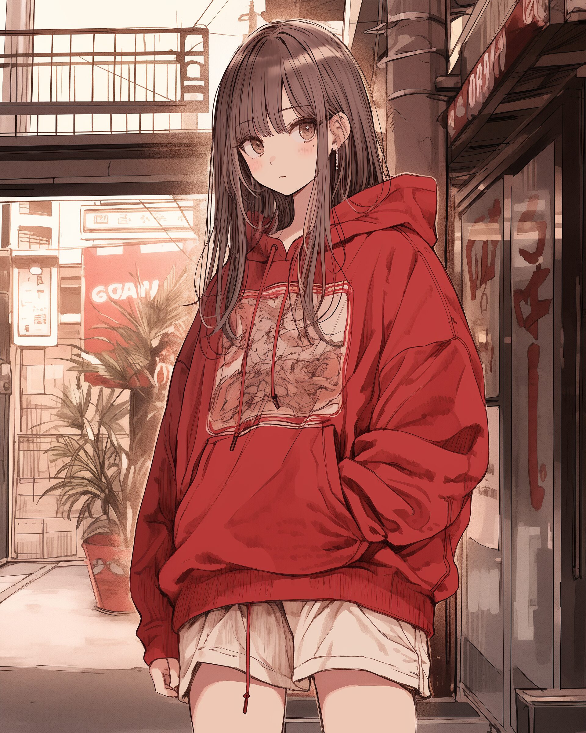 検索タグ:イラスト、ファッション、キャラクター、女性、女、女の子、女子、女の人、アニメ、漫画、マンガ、美人、美女、若い、かわいい、可愛い、カワイイ、人物、顔、美しい、綺麗、きれい、キレイ、アート、洋服、お洒落、女子高生、JK、横顔、切ない、挿絵、夜、赤、パーカー、パーカー女子