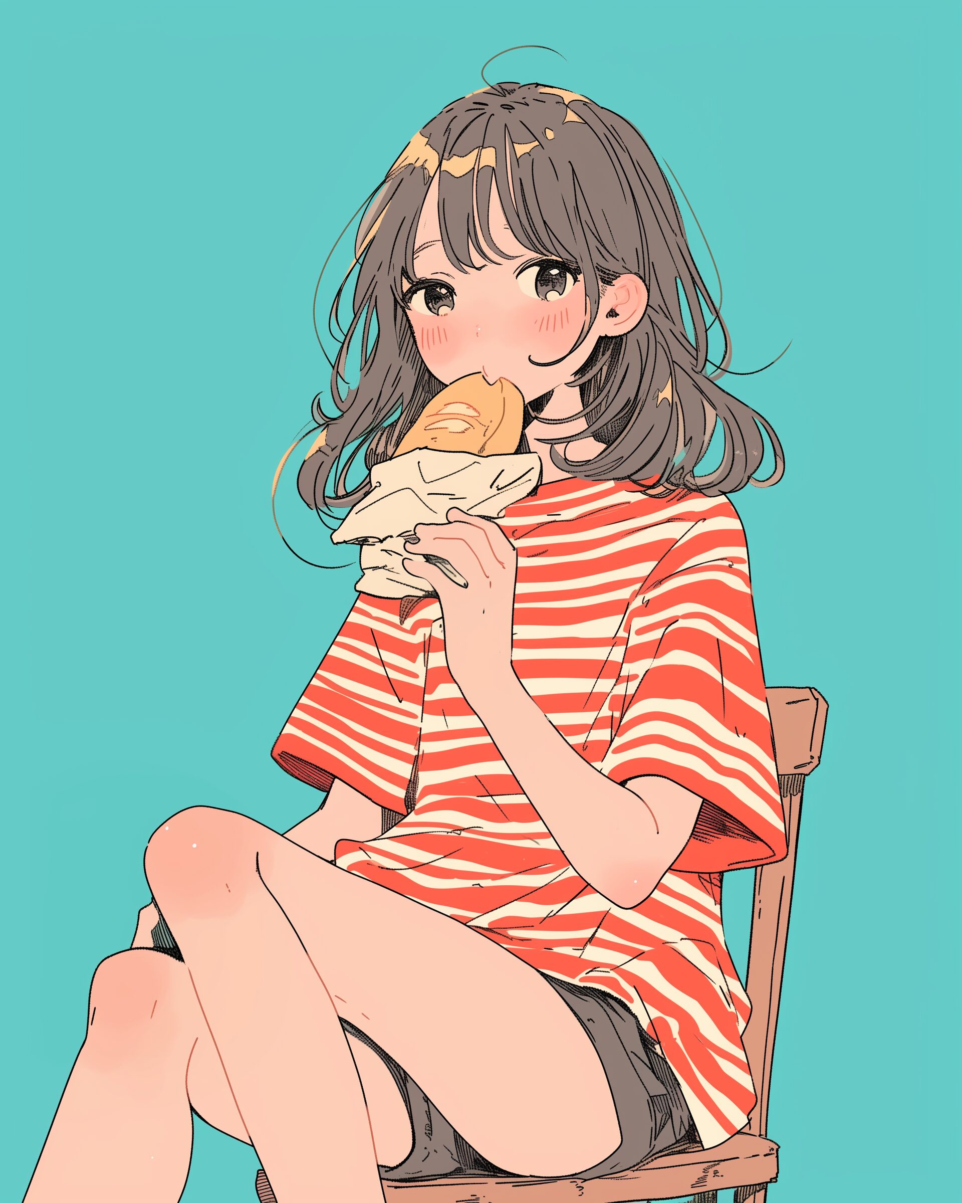 検索タグ:イラスト、ファッション、キャラクター、女性、女、女の子、女子、女の人、アニメ、漫画、マンガ、美人、美女、若い、かわいい、可愛い、カワイイ、人物、顔、美しい、綺麗、きれい、キレイ、アート、お洒落、女子高生、JK、挿絵、夏、春、パステルカラー、春服、インスタ、Instagram、アイコン、icon,eat、赤、ボーダー、レッド、RED、パン