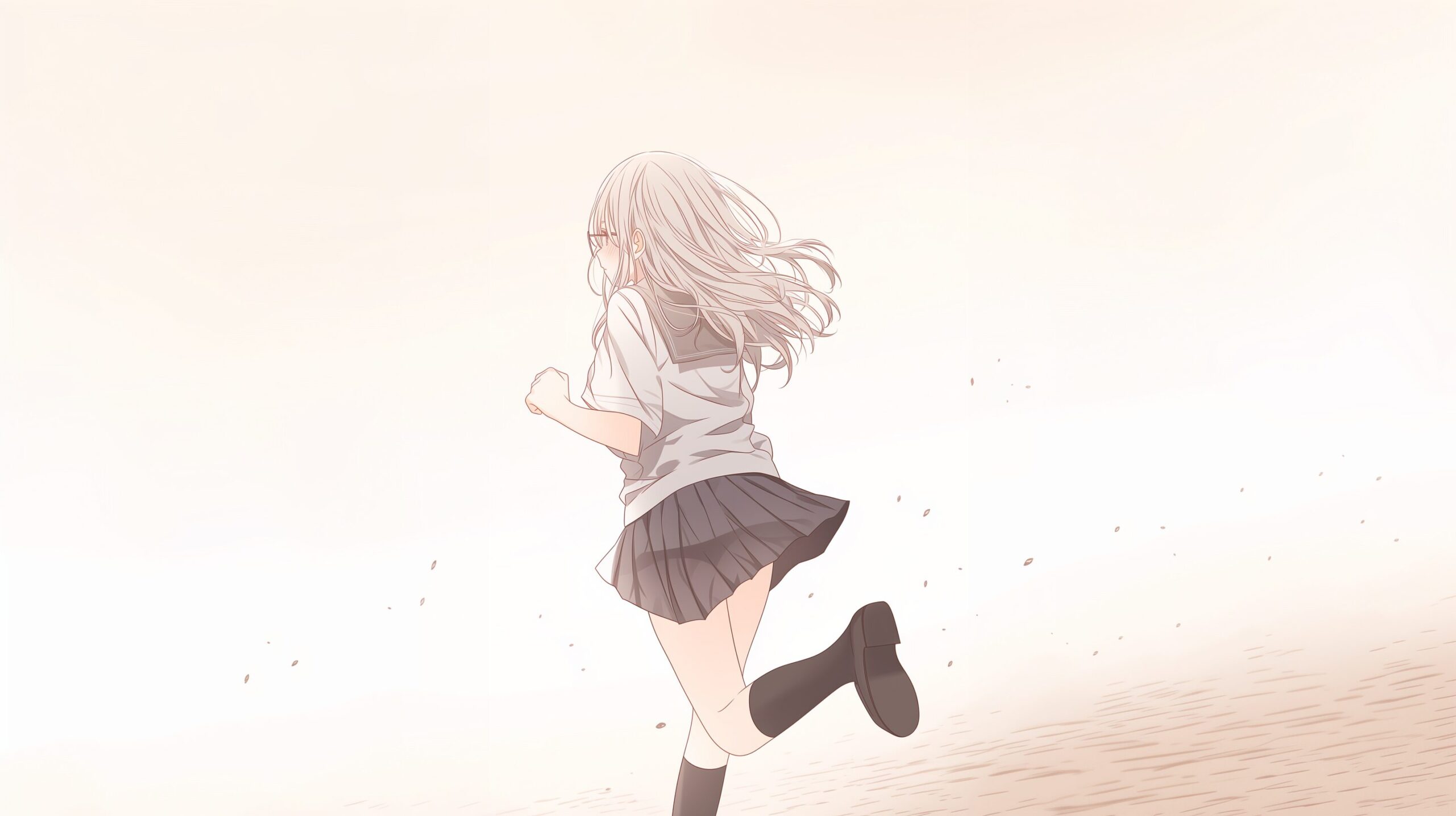 検索タグ:イラスト、ファッション、キャラクター、女性、女、女の子、女子、女の人、アニメ、漫画、マンガ、美人、美女、若い、かわいい、可愛い、カワイイ、人物、顔、美しい、綺麗、きれい、キレイ、アート、お洒落、挿絵、インスタ、Instagram、AI生成画像、fashion、コピースペース、学生、高校生、銀髪、シエ卯バーヘア、眼鏡、メガネ、めがね、走る、ランニング、逃げる、逃げ出す、ダッシュ、恥ずかしい、横長、後ろ姿、神様勇気をください