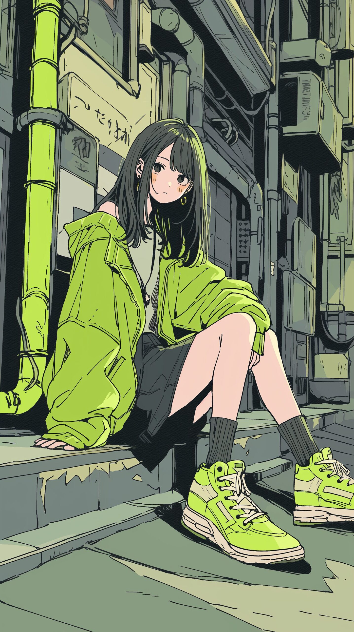 検索タグ:イラスト、ファッション、キャラクター、女性、女、女の子、女子、女の人、アニメ、漫画、マンガ、美人、美女、若い、かわいい、可愛い、カワイイ、人物、顔、美しい、綺麗、きれい、キレイ、アート、お洒落、女子高生、JK、挿絵、夏、春、パステルカラー、春服、インスタ、Instagram、夏、夏服、summer、fashion、サムネイル、アイキャッチ、コピースペース、壁紙、待ち受け画像、wallpaper、ロック画面、レトロ感、路地裏、緑、グリーン、Green