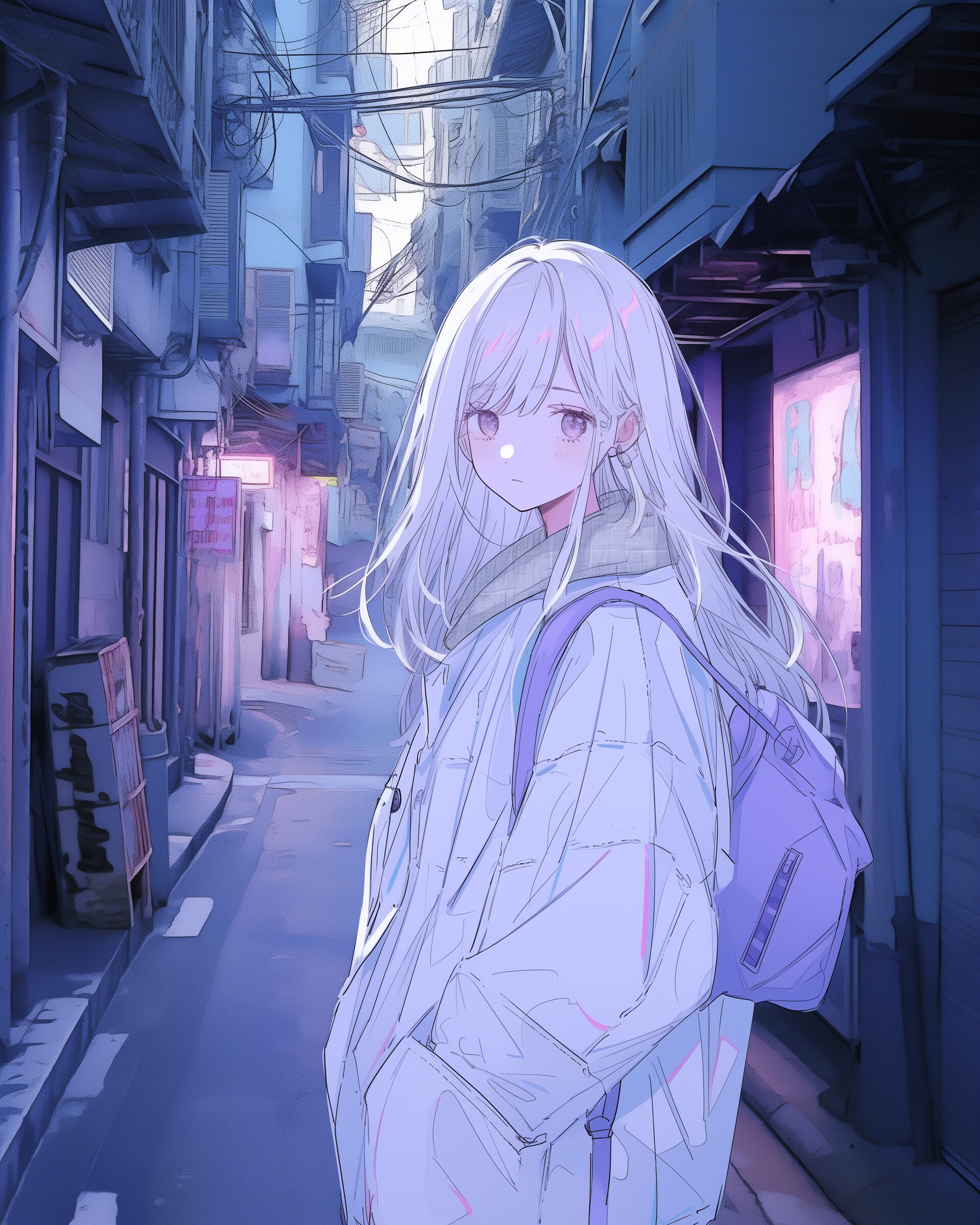 検索タグ:イラスト、ファッション、キャラクター、女性、女、女の子、女子、女の人、アニメ、漫画、マンガ、美人、美女、若い、かわいい、可愛い、カワイイ、人物、顔、美しい、綺麗、きれい、キレイ、アート、お洒落、女子高生、JK、挿絵、夏、春、パステルカラー、春服、インスタ、Instagram、路地裏、Blue、ブルー、青