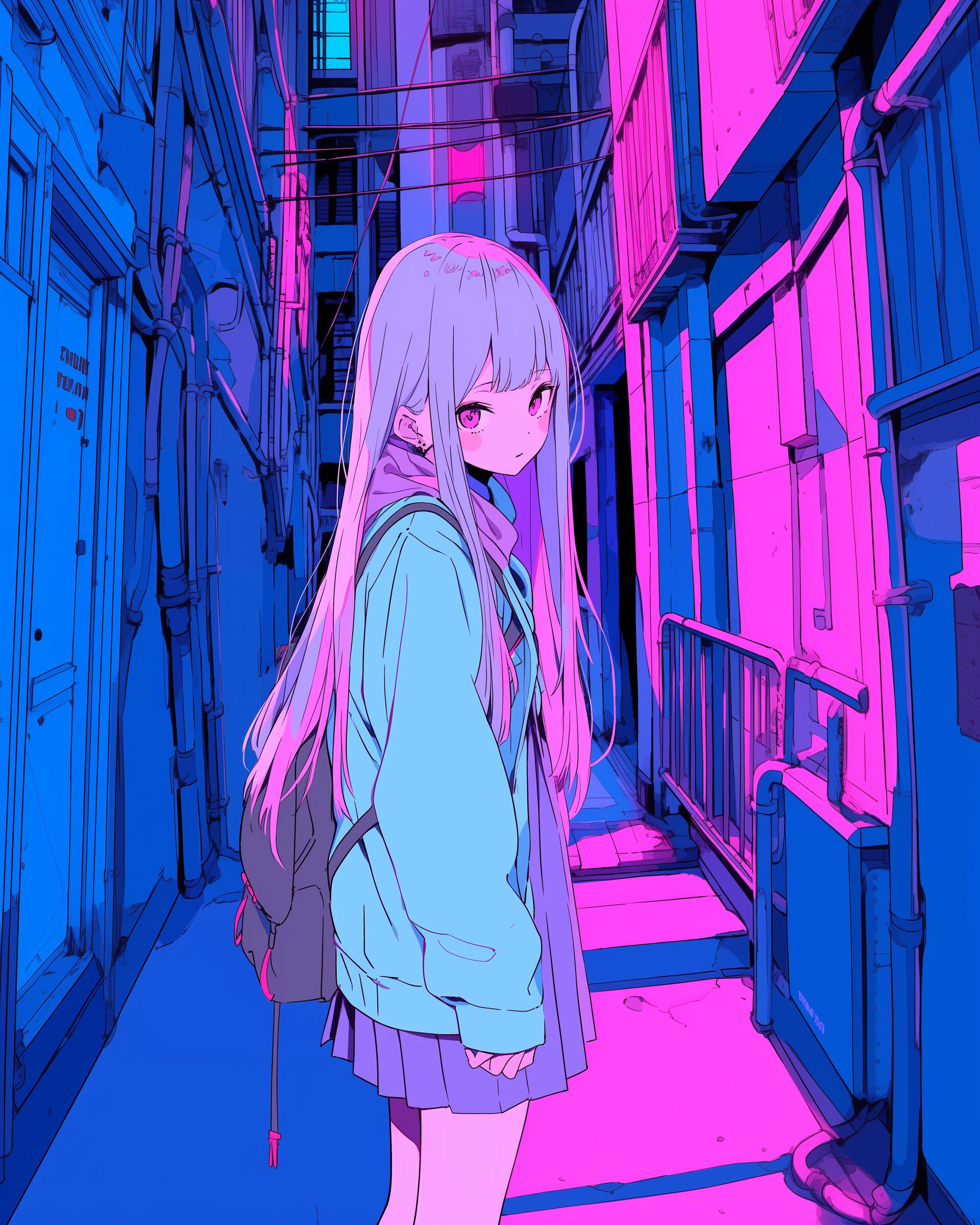 検索タグ:イラスト、ファッション、キャラクター、女性、女、女の子、女子、女の人、アニメ、漫画、マンガ、美人、美女、若い、かわいい、可愛い、カワイイ、人物、顔、美しい、綺麗、きれい、キレイ、アート、お洒落、女子高生、JK、挿絵、夏、春、パステルカラー、春服、インスタ、Instagram、路地裏、Blue、ブルー、青