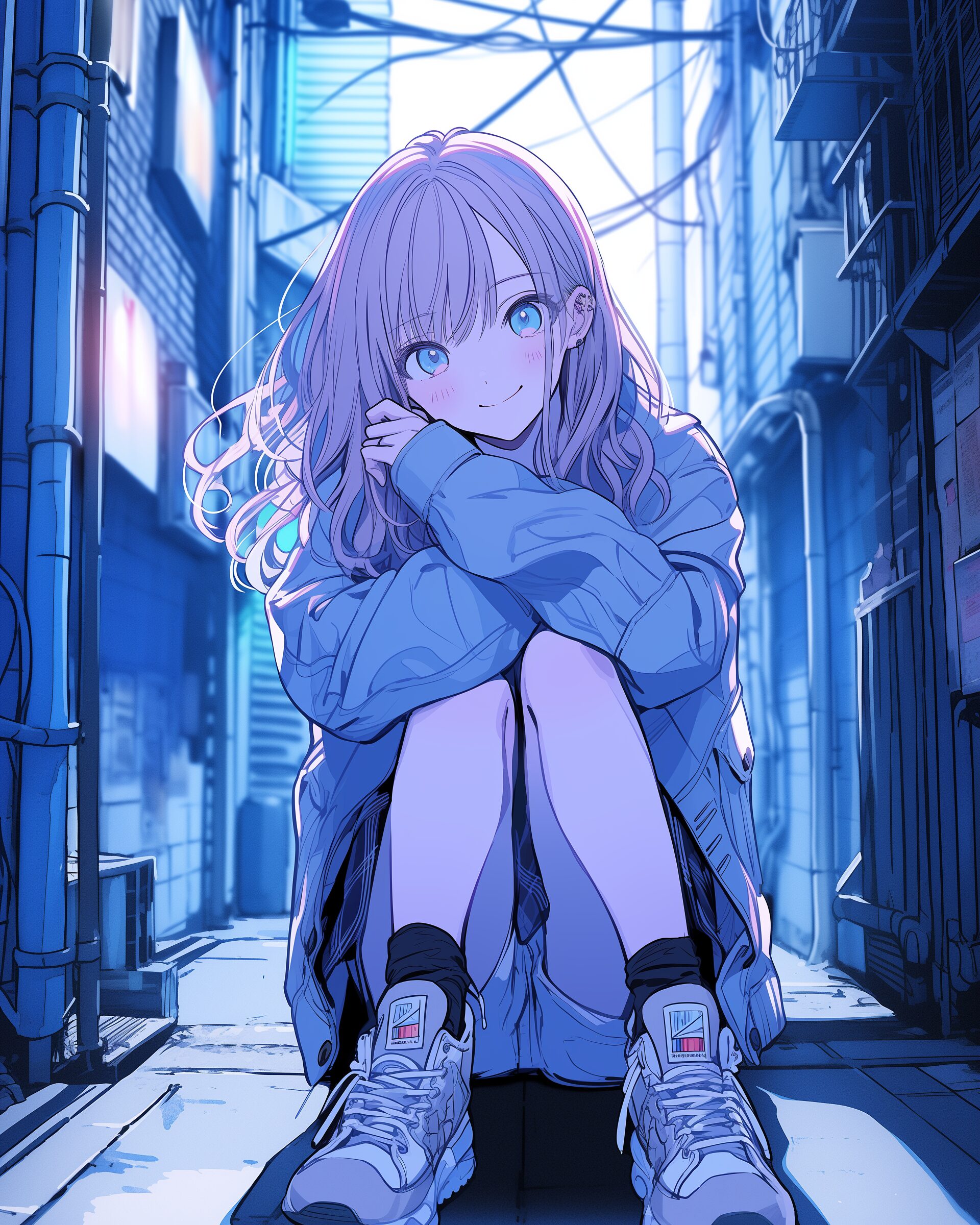 検索タグ:イラスト、ファッション、キャラクター、女性、女、女の子、女子、女の人、アニメ、漫画、マンガ、美人、美女、若い、かわいい、可愛い、カワイイ、人物、顔、美しい、綺麗、きれい、キレイ、アート、お洒落、女子高生、JK、挿絵、夏、春、パステルカラー、春服、インスタ、Instagram、路地裏、Blue、ブルー、青