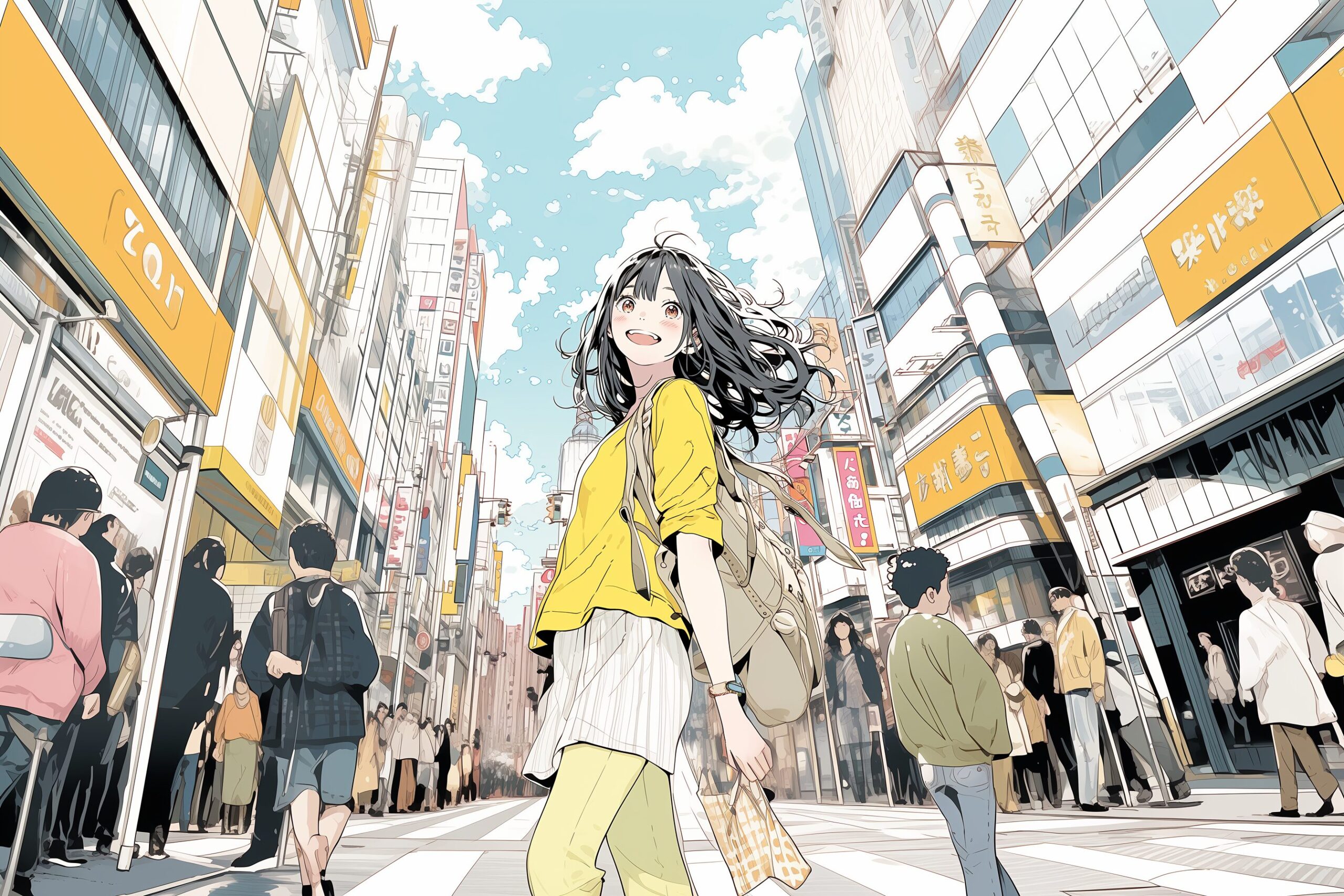 検索タグ:イラスト、ファッション、キャラクター、女性、女、女の子、女子、女の人、アニメ、漫画、マンガ、美人、美女、若い、かわいい、可愛い、カワイイ、人物、顔、美しい、綺麗、きれい、キレイ、アート、お洒落、女子高生、JK、挿絵、夏、春、パステルカラー、春服、インスタ、Instagram、イエロー、yellow、黄色、都会