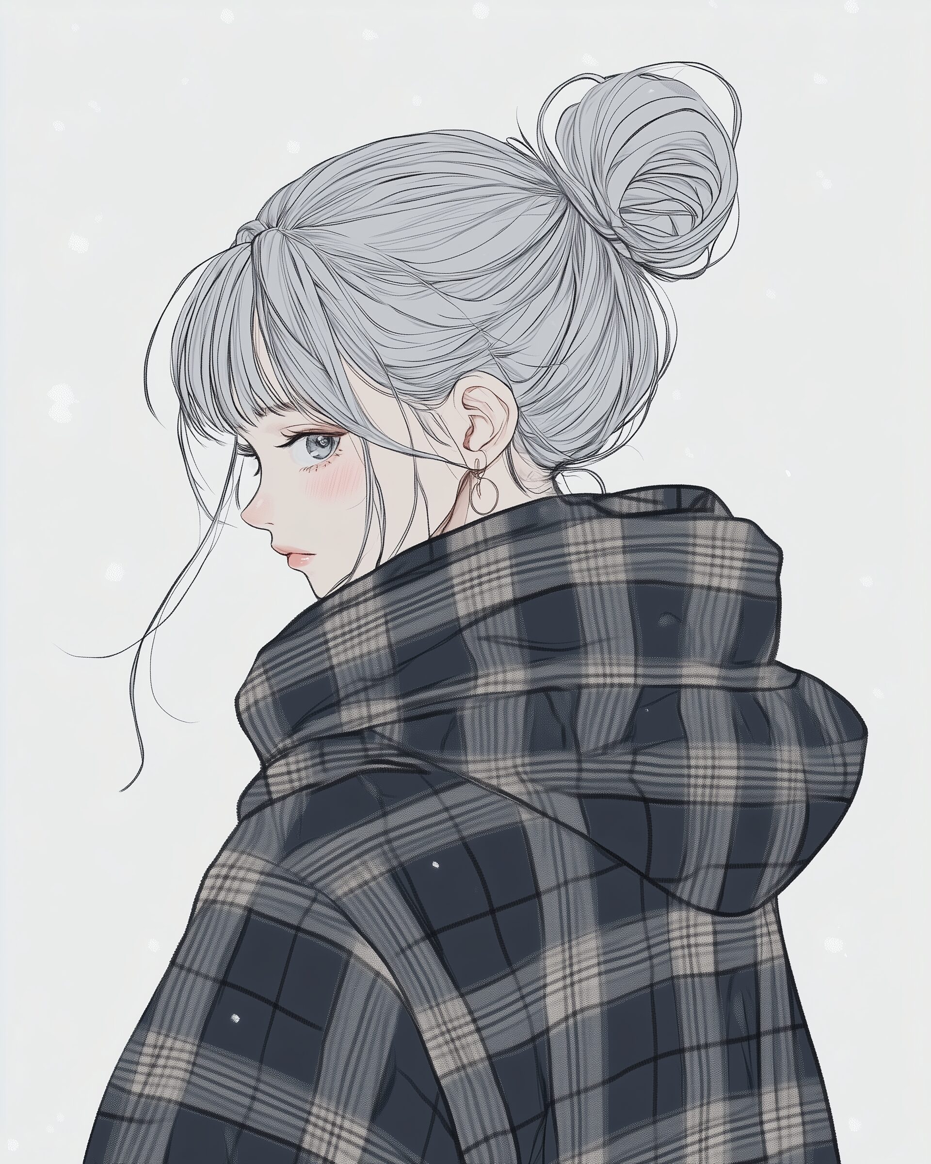 検索タグ:イラスト、ファッション、キャラクター、女性、女、女の子、女子、女の人、アニメ、漫画、マンガ、美人、美女、若い、かわいい、可愛い、カワイイ、人物、顔、美しい、綺麗、きれい、キレイ、アート、お洒落、挿絵、インスタ、Instagram、AI生成画像、fashion、コピースペース、おしゃれ、オシャレ、秋、秋服、冬服、パーカー女子、ぱっつん、パッツン、冬、銀髪、シルバーヘア、お団子ヘア、笑顔