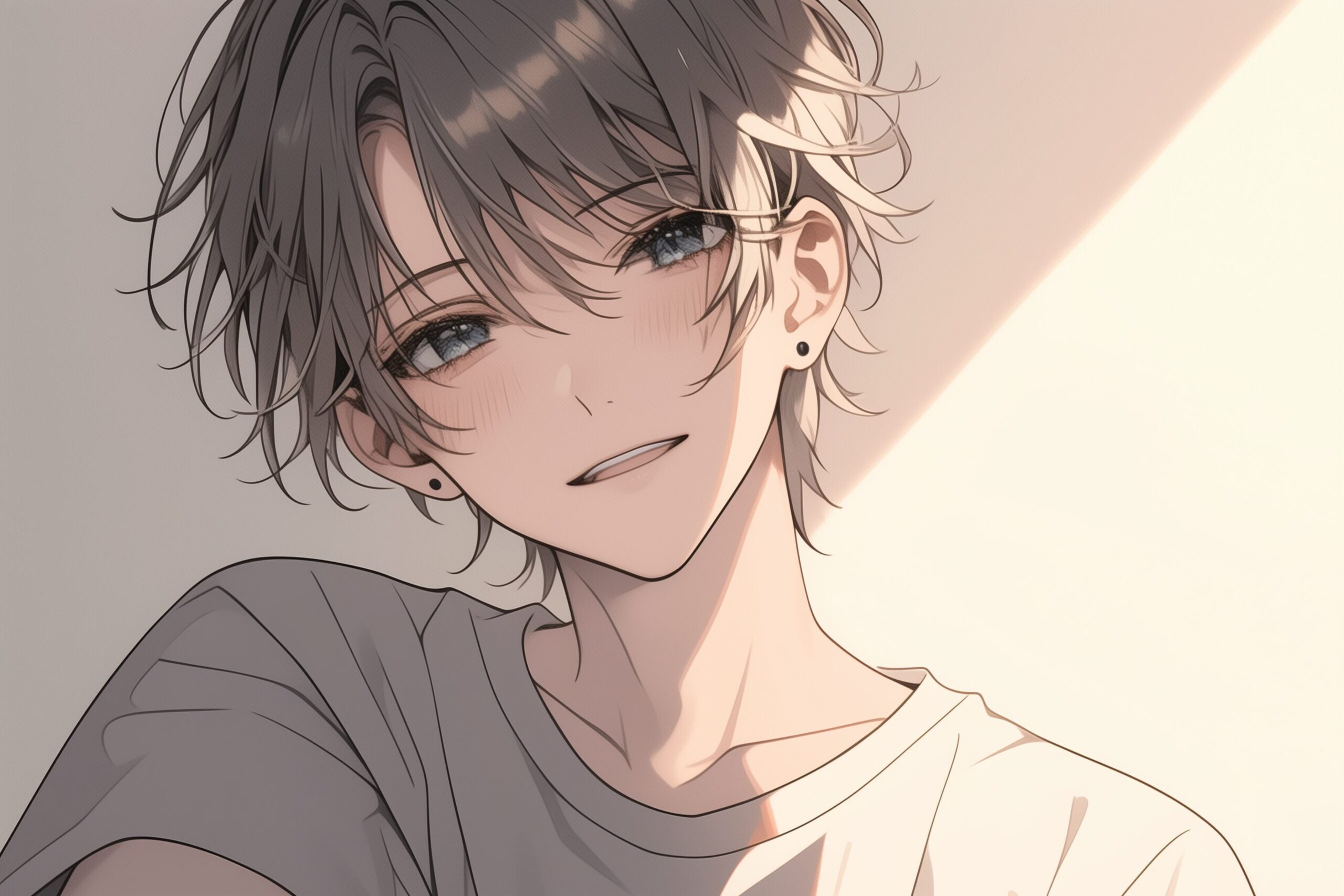 検索タグ:イラスト、キャラクター、男子、男性、男、男の人、アニメ、漫画、マンガ、若い、人物、顔、美しい、綺麗、きれい、キレイ、アート、お洒落、挿絵、インスタ、Instagram、AI生成画像、コピースペース、イケメン、男前、かっこいい、カッコいい、カッコイイ、部屋、金髪、銀髪、笑顔、シルバーヘア、座る、室内、クール