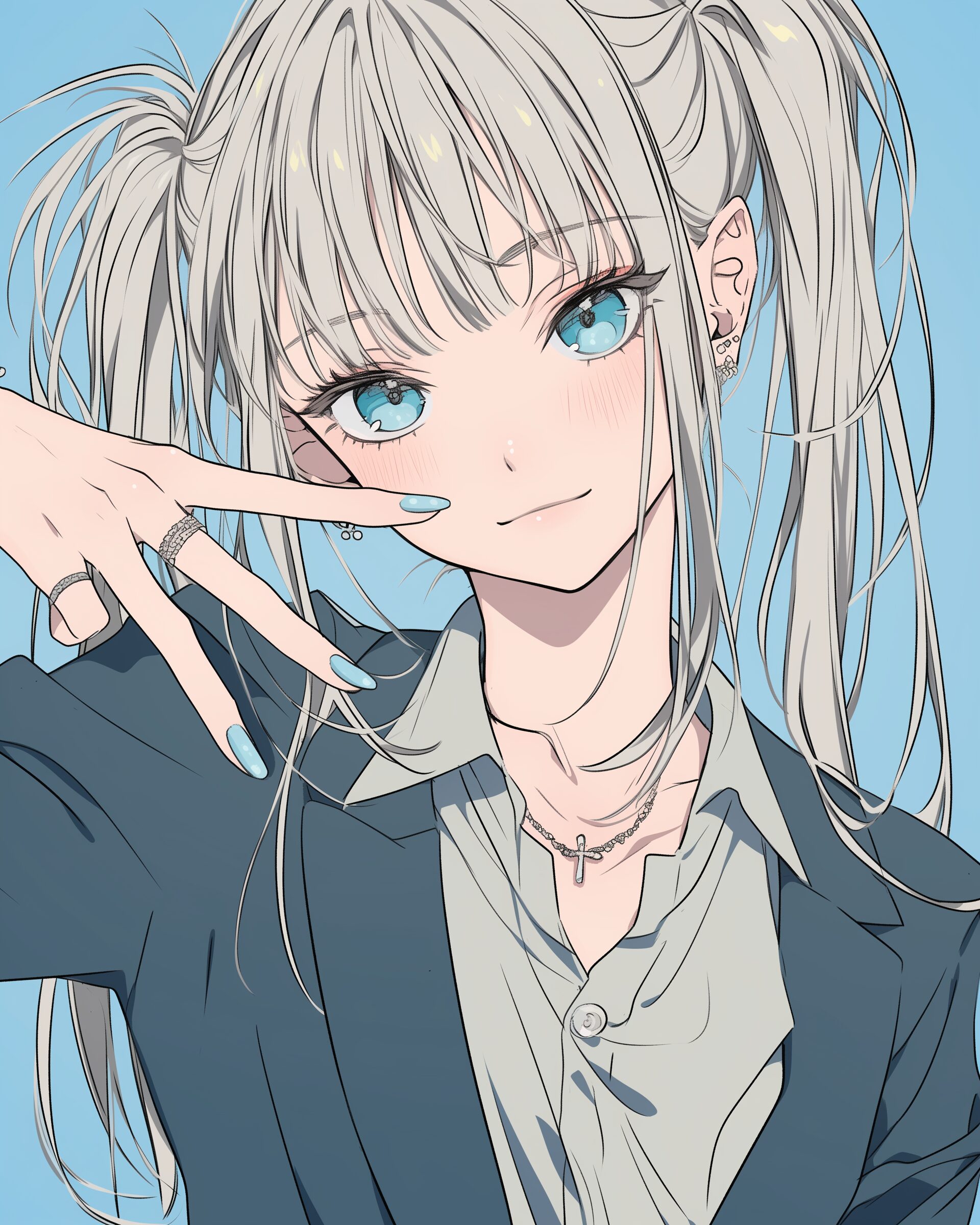検索タグ:イラスト、ファッション、キャラクター、女性、女、女の子、女子、女の人、アニメ、漫画、マンガ、美人、美女、若い、かわいい、可愛い、カワイイ、人物、顔、美しい、綺麗、きれい、キレイ、アート、お洒落、挿絵、インスタ、Instagram、AI生成画像、fashion、コピースペース、おしゃれ、オシャレ、笑顔、銀髪、クール