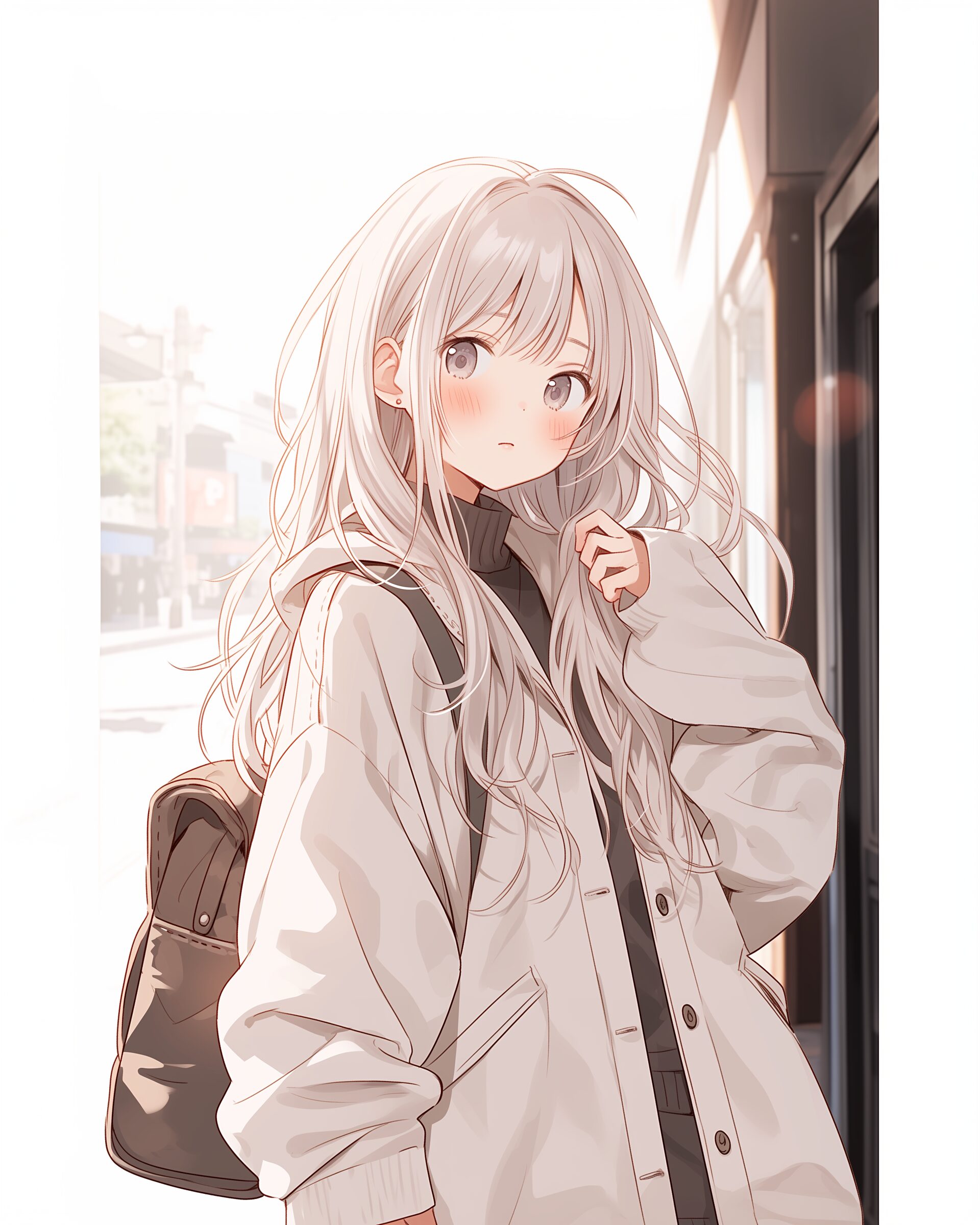 検索タグ:イラスト、ファッション、キャラクター、女性、女、女の子、女子、女の人、アニメ、漫画、マンガ、美人、美女、若い、かわいい、可愛い、カワイイ、人物、顔、美しい、綺麗、きれい、キレイ、アート、お洒落、挿絵、インスタ、Instagram、AI生成画像、fashion、コピースペース、おしゃれ、オシャレ、秋、秋服、パーカー女子、銀髪、シルバーヘア、ピース、笑顔