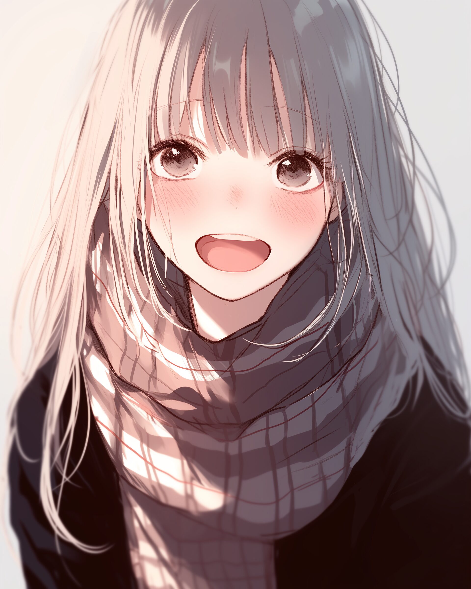 検索タグ:イラスト、ファッション、キャラクター、女性、女、女の子、女子、女の人、アニメ、漫画、マンガ、美人、美女、若い、かわいい、可愛い、カワイイ、人物、顔、美しい、綺麗、きれい、キレイ、アート、お洒落、挿絵、インスタ、Instagram、AI生成画像、fashion、コピースペース、銀髪、笑顔、パーカー女子、マフラー、ストール、冬服