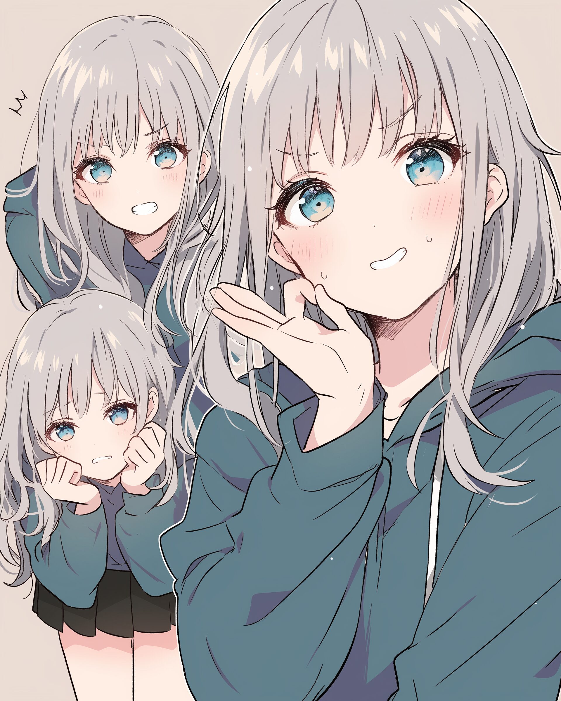 検索タグ:イラスト、ファッション、キャラクター、女性、女、女の子、女子、女の人、アニメ、漫画、マンガ、美人、美女、若い、かわいい、可愛い、カワイイ、人物、顔、美しい、綺麗、きれい、キレイ、アート、お洒落、挿絵、インスタ、Instagram、AI生成画像、fashion、コピースペース、銀髪、パーカー女子、笑顔、喜怒哀楽