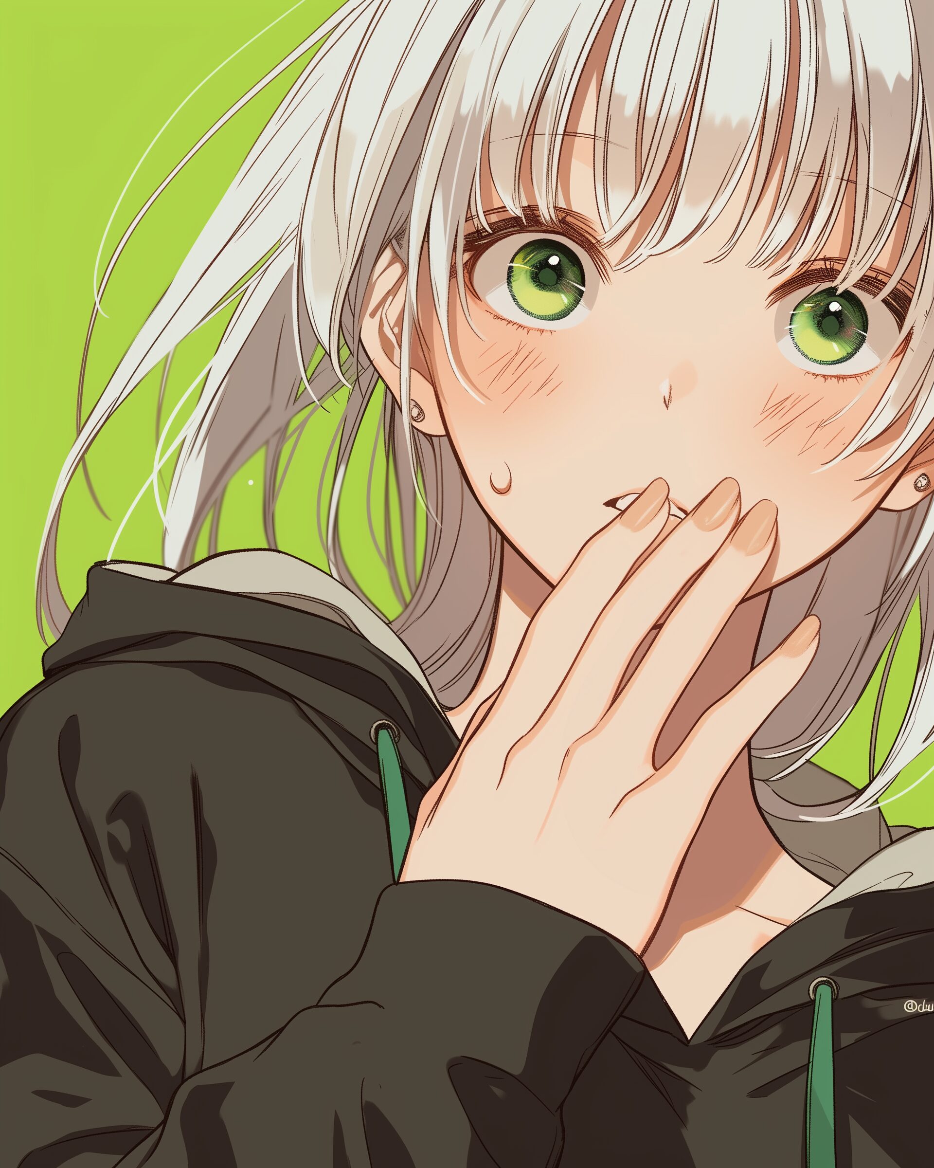 検索タグ:イラスト、ファッション、キャラクター、女性、女、女の子、女子、女の人、アニメ、漫画、マンガ、美人、美女、若い、かわいい、可愛い、カワイイ、人物、顔、美しい、綺麗、きれい、キレイ、アート、お洒落、挿絵、インスタ、Instagram、AI生成画像、fashion、コピースペース、銀髪、笑顔、パーカー女子、