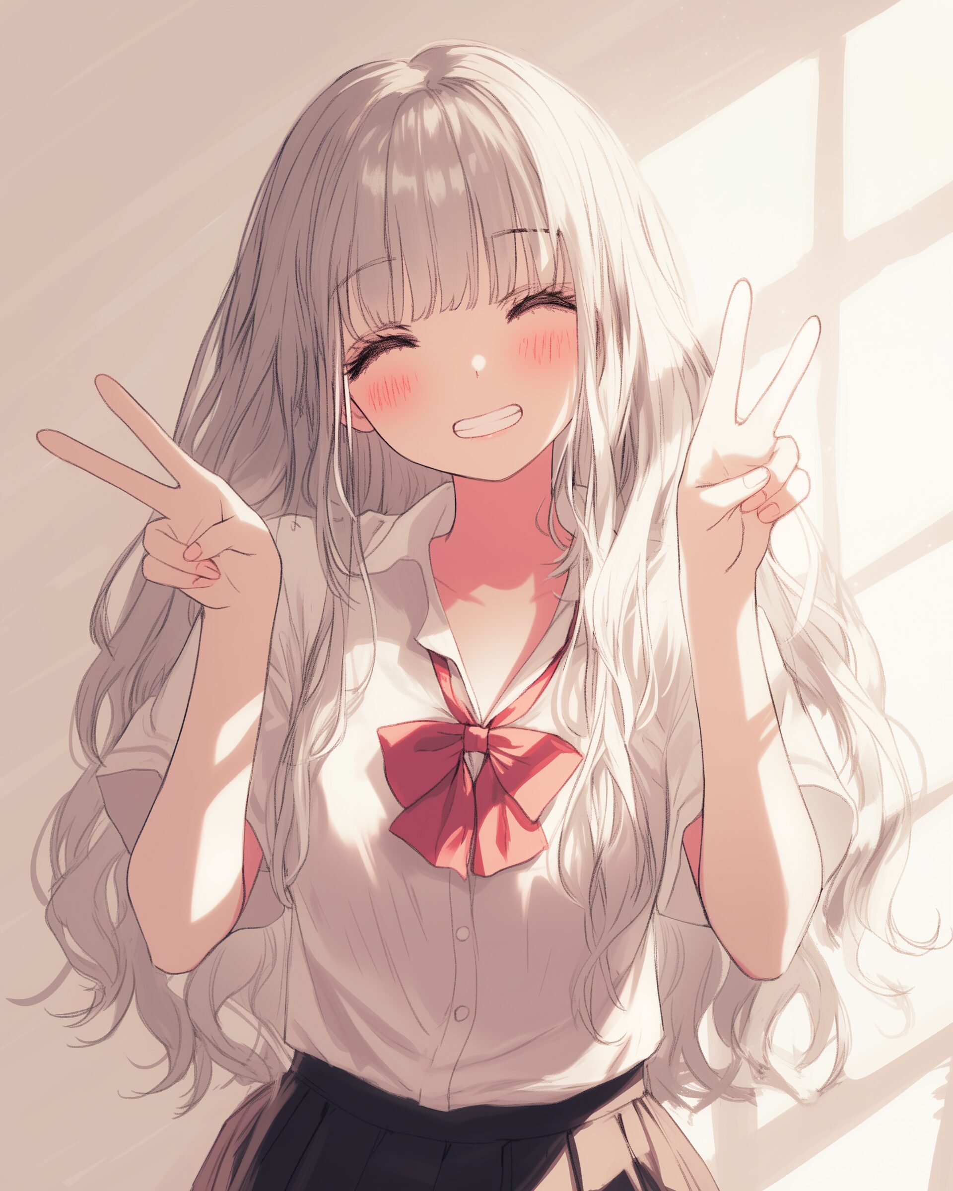 検索タグ:イラスト、ファッション、キャラクター、女性、女、女の子、女子、女の人、アニメ、漫画、マンガ、美人、美女、若い、かわいい、可愛い、カワイイ、人物、顔、美しい、綺麗、きれい、キレイ、アート、お洒落、挿絵、インスタ、Instagram、AI生成画像、fashion、コピースペース、銀髪、笑顔、パーカー女子、ピース