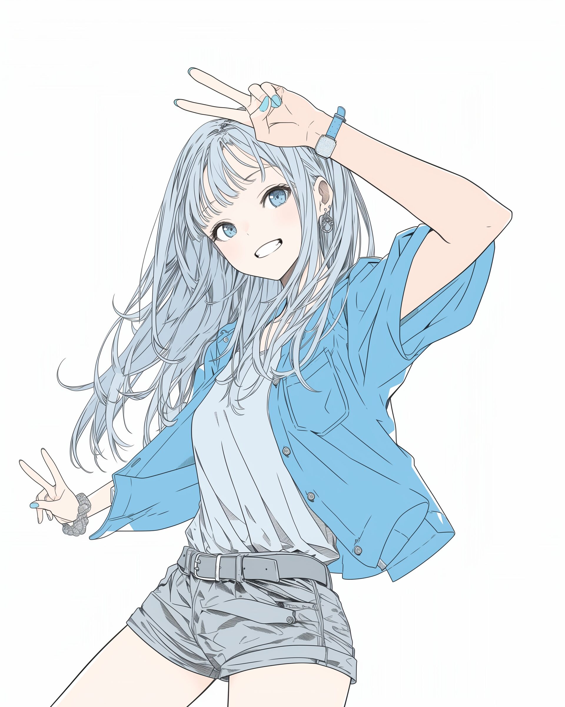 検索タグ:イラスト、ファッション、キャラクター、女性、女、女の子、女子、女の人、アニメ、漫画、マンガ、美人、美女、若い、かわいい、可愛い、カワイイ、人物、顔、美しい、綺麗、きれい、キレイ、アート、お洒落、挿絵、インスタ、Instagram、AI生成画像、fashion、コピースペース、銀髪、笑顔、パーカー女子、ピース