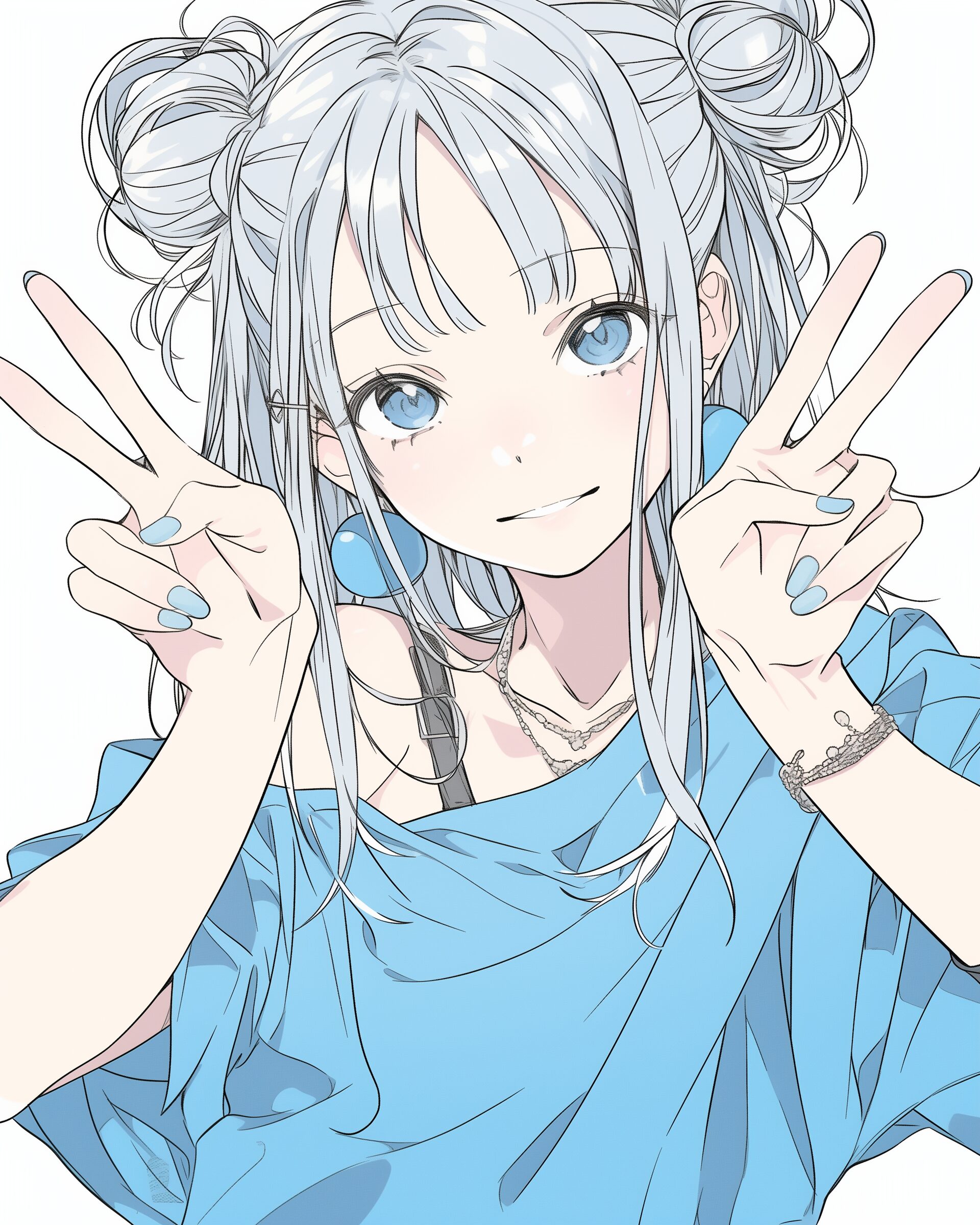 検索タグ:イラスト、ファッション、キャラクター、女性、女、女の子、女子、女の人、アニメ、漫画、マンガ、美人、美女、若い、かわいい、可愛い、カワイイ、人物、顔、美しい、綺麗、きれい、キレイ、アート、お洒落、挿絵、インスタ、Instagram、AI生成画像、fashion、コピースペース、銀髪、笑顔、パーカー女子、ピース