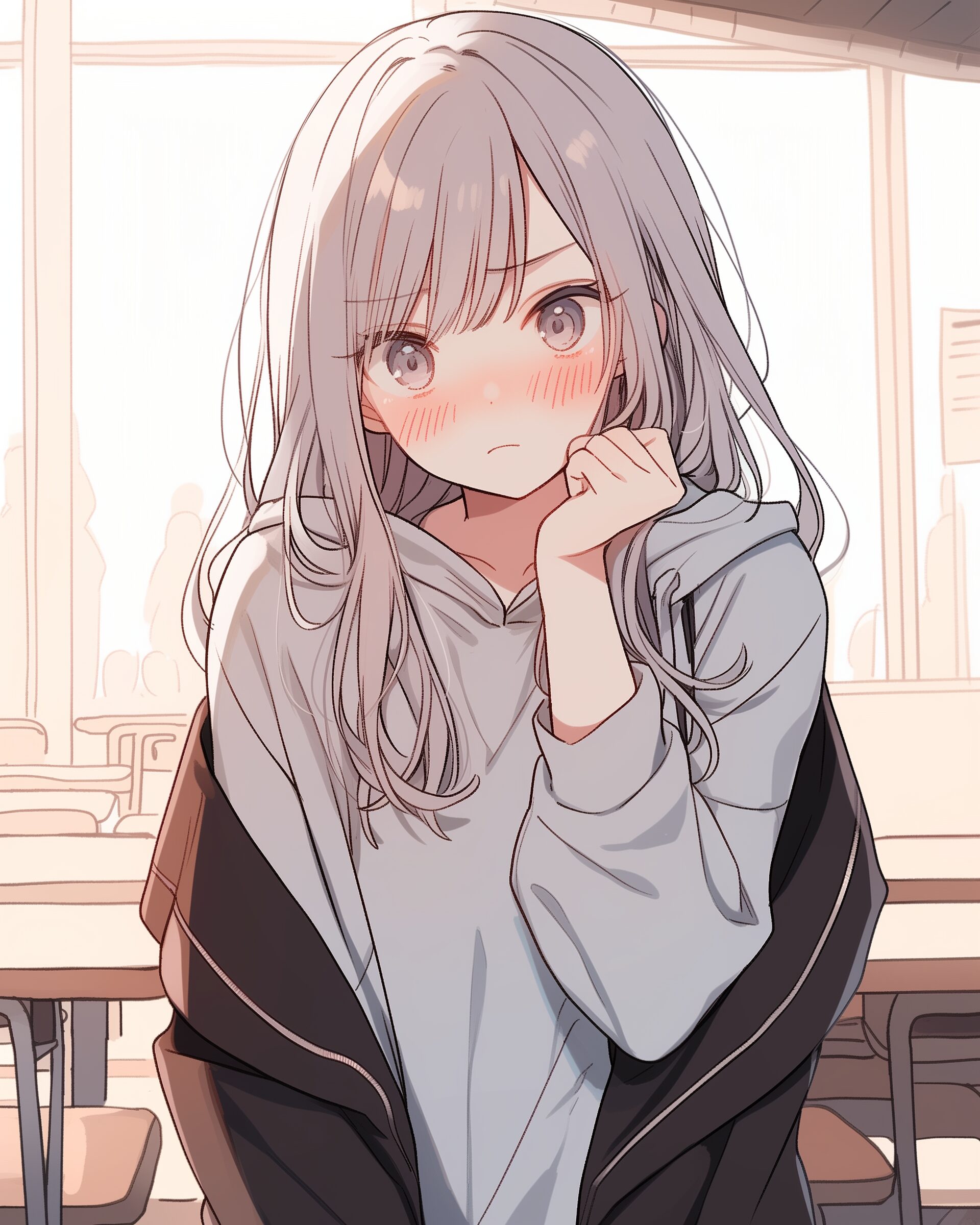 検索タグ:イラスト、ファッション、キャラクター、女性、女、女の子、女子、女の人、アニメ、漫画、マンガ、美人、美女、若い、かわいい、可愛い、カワイイ、人物、顔、美しい、綺麗、きれい、キレイ、アート、お洒落、挿絵、インスタ、Instagram、AI生成画像、fashion、コピースペース、おしゃれ、オシャレ、秋、秋服、パーカー女子、銀髪、シルバーヘア