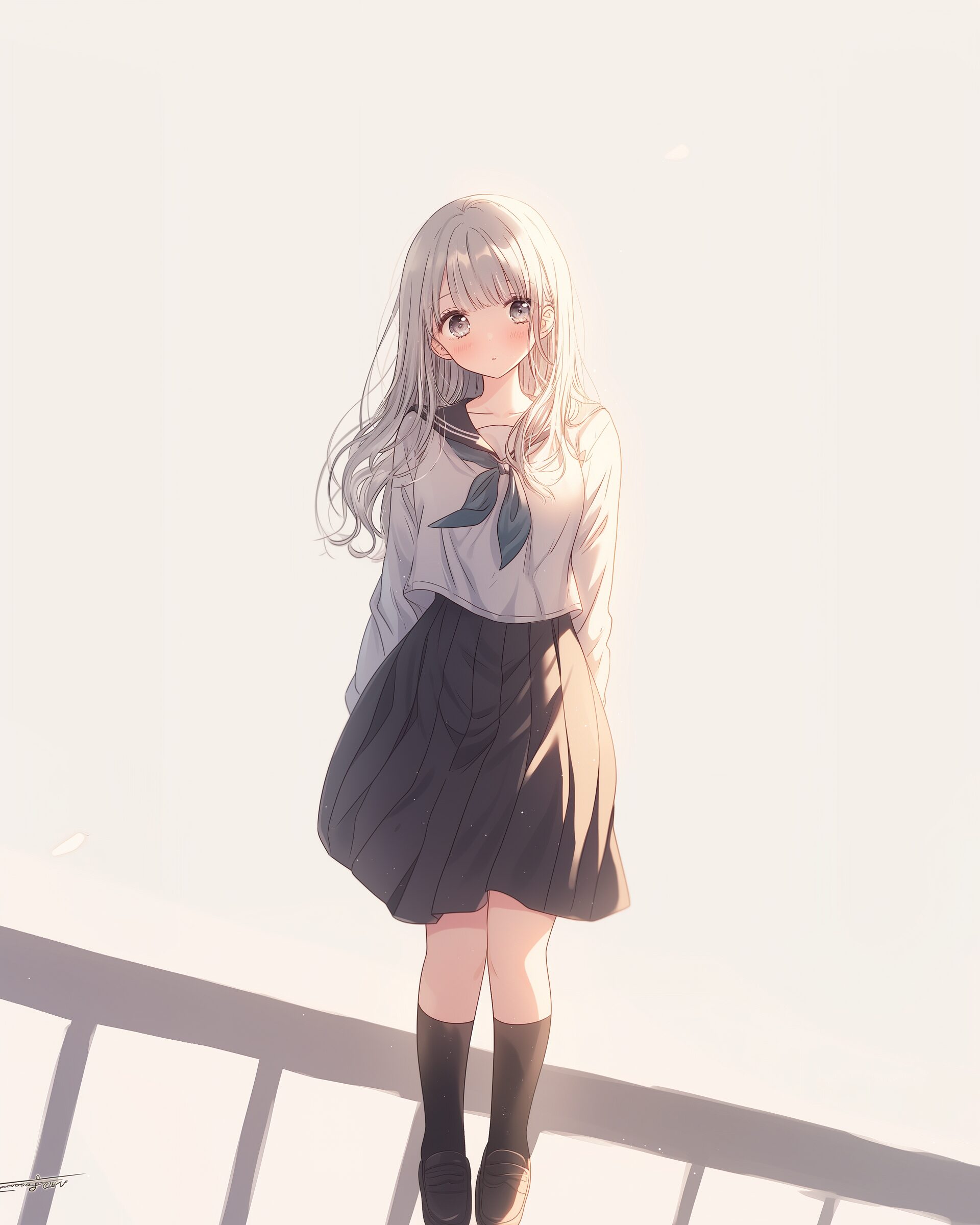 検索タグ:イラスト、ファッション、キャラクター、女性、女、女の子、女子、女の人、アニメ、漫画、マンガ、美人、美女、若い、かわいい、可愛い、カワイイ、人物、顔、美しい、綺麗、きれい、キレイ、アート、お洒落、挿絵、インスタ、Instagram、AI生成画像、fashion、コピースペース、銀髪、シルバーヘア、制服、学生、女子高生、東雲蓮花、しののめ れんか