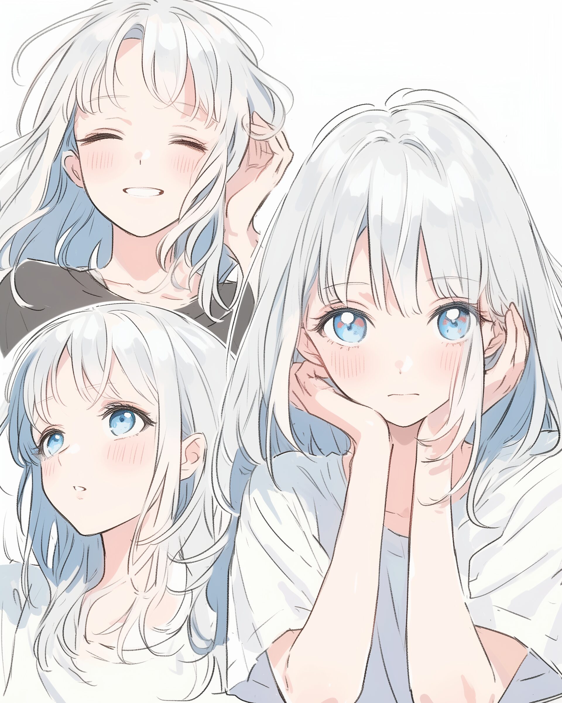 検索タグ:イラスト、ファッション、キャラクター、女性、女、女の子、女子、女の人、アニメ、漫画、マンガ、美人、美女、若い、かわいい、可愛い、カワイイ、人物、顔、美しい、綺麗、きれい、キレイ、アート、お洒落、挿絵、インスタ、Instagram、AI生成画像、fashion、コピースペース、銀髪、喜怒哀楽