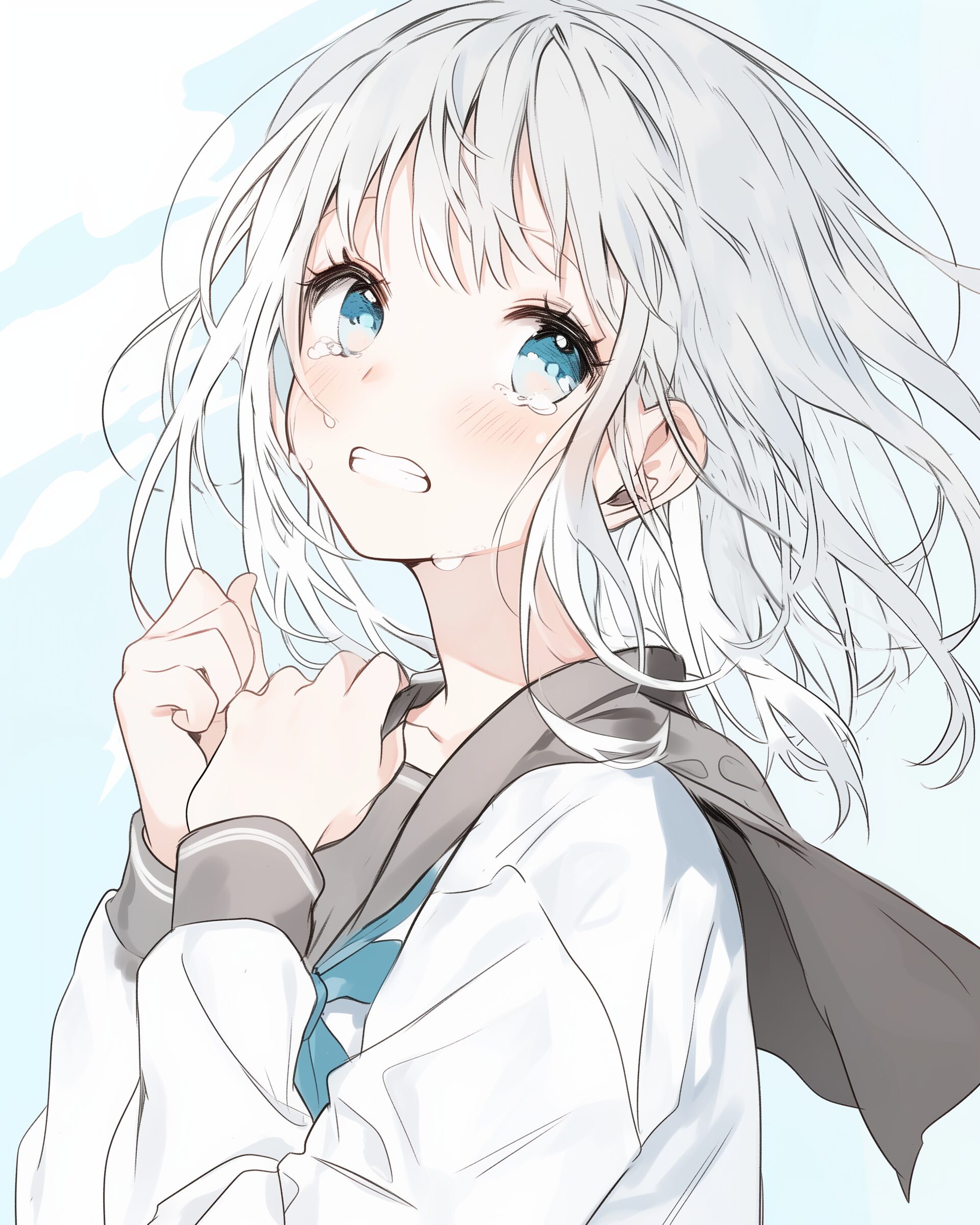 検索タグ:イラスト、ファッション、キャラクター、女性、女、女の子、女子、女の人、アニメ、漫画、マンガ、美人、美女、若い、かわいい、可愛い、カワイイ、人物、顔、美しい、綺麗、きれい、キレイ、アート、お洒落、挿絵、インスタ、Instagram、AI生成画像、fashion、コピースペース、銀髪、喜怒哀楽、泣く、涙