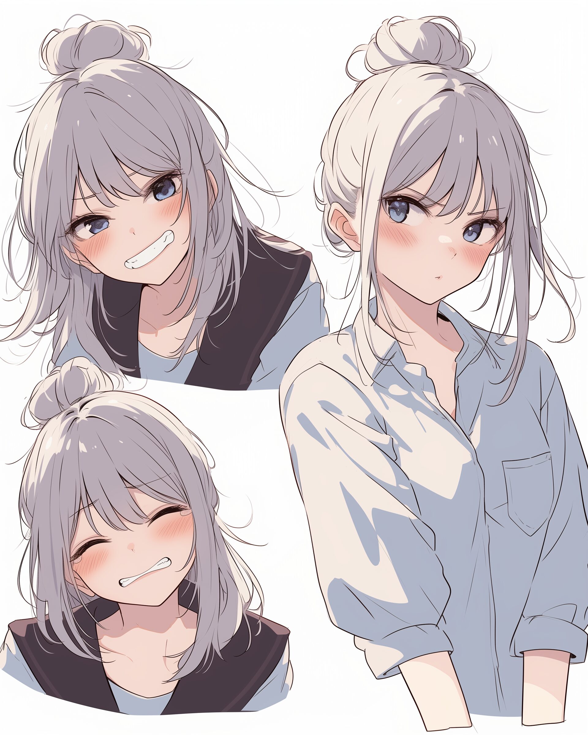 検索タグ:イラスト、ファッション、キャラクター、女性、女、女の子、女子、女の人、アニメ、漫画、マンガ、美人、美女、若い、かわいい、可愛い、カワイイ、人物、顔、美しい、綺麗、きれい、キレイ、アート、お洒落、挿絵、インスタ、Instagram、AI生成画像、fashion、コピースペース、おしゃれ、オシャレ、秋、秋服、冬服、銀髪、シルバーヘア、お団子ヘア、喜怒哀楽