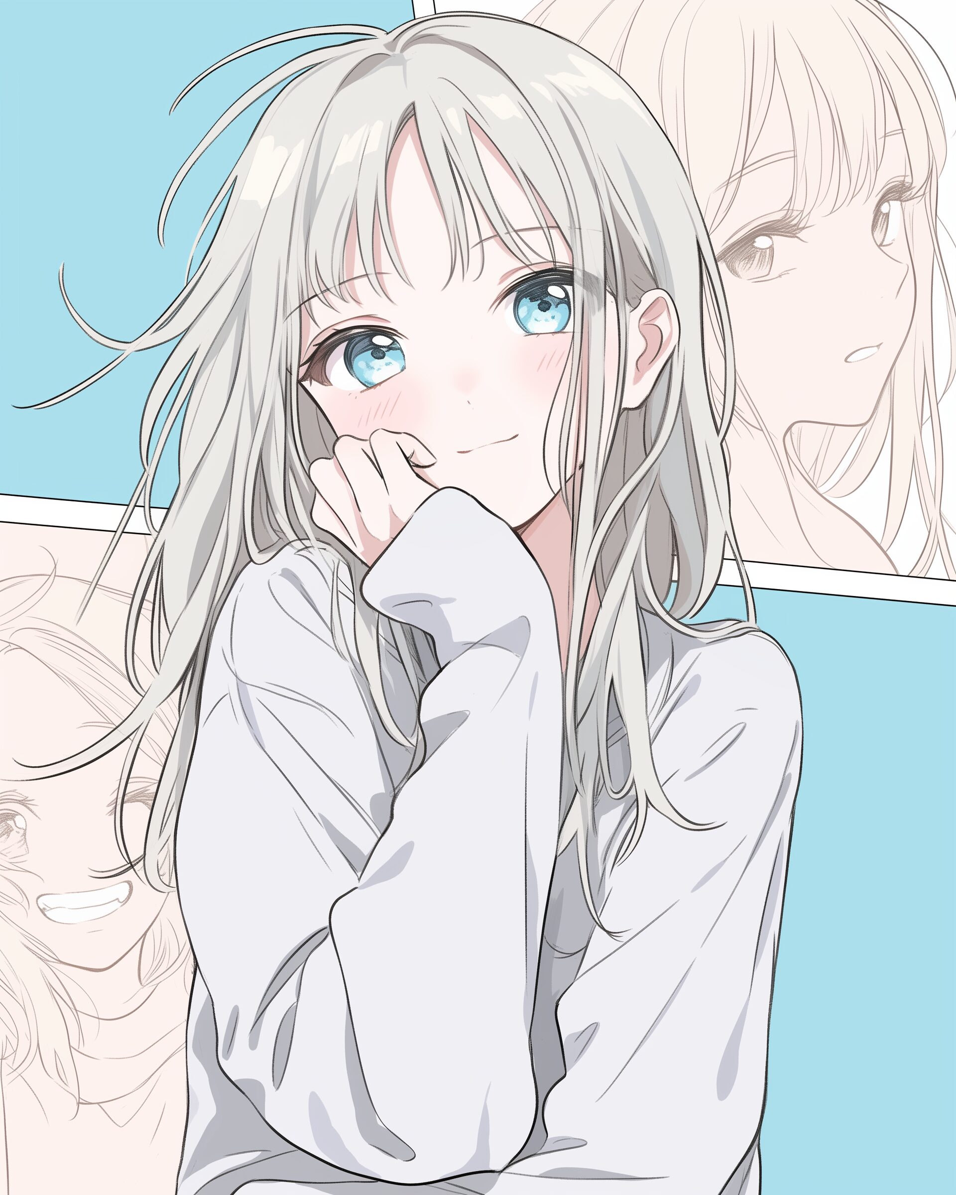 検索タグ:イラスト、ファッション、キャラクター、女性、女、女の子、女子、女の人、アニメ、漫画、マンガ、美人、美女、若い、かわいい、可愛い、カワイイ、人物、顔、美しい、綺麗、きれい、キレイ、アート、お洒落、挿絵、インスタ、Instagram、AI生成画像、fashion、コピースペース、銀髪、喜怒哀楽